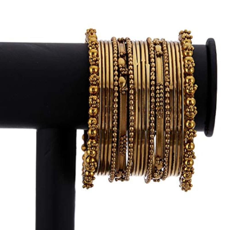Elegant set of 20 oxidised bangles with a classic textured design in a beautiful mehandi tone. Perfect accessory for traditional occasions.