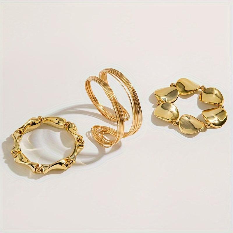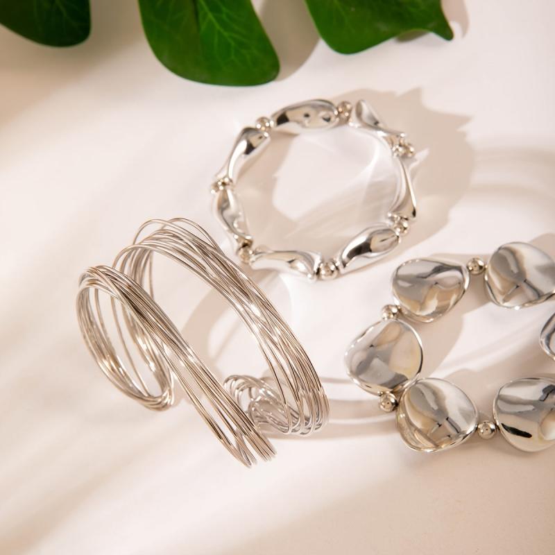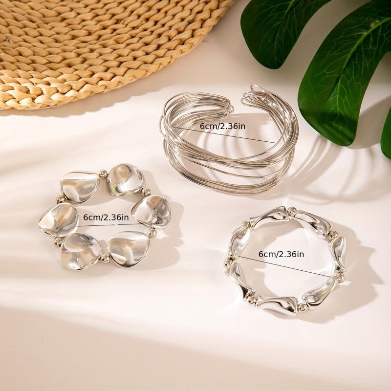 Stand out with this unique set of 3 open cuff bracelets. Made of irregular CCB chain, these bracelets are perfect for female dance parties and gatherings.