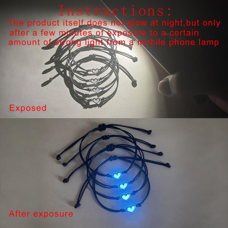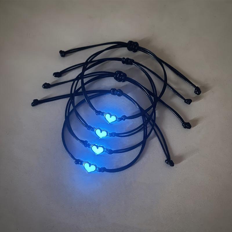 Share these unique glow-in-the-dark heart bracelets with your friends. Handcrafted and woven with care, these bracelets are a symbol of friendship that will light up your night.