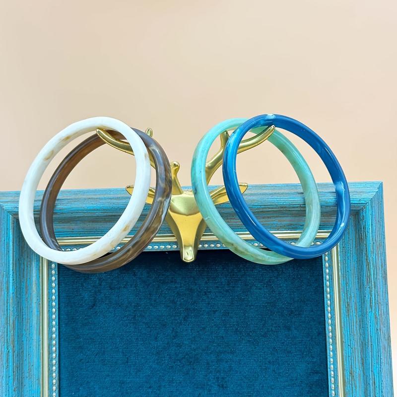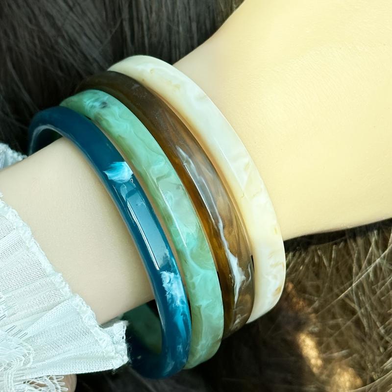 Elevate your style with this set of 4 European and American style resin bracelets. Perfect for daily wear and parties, these textured bracelets add a unique touch to any outfit.