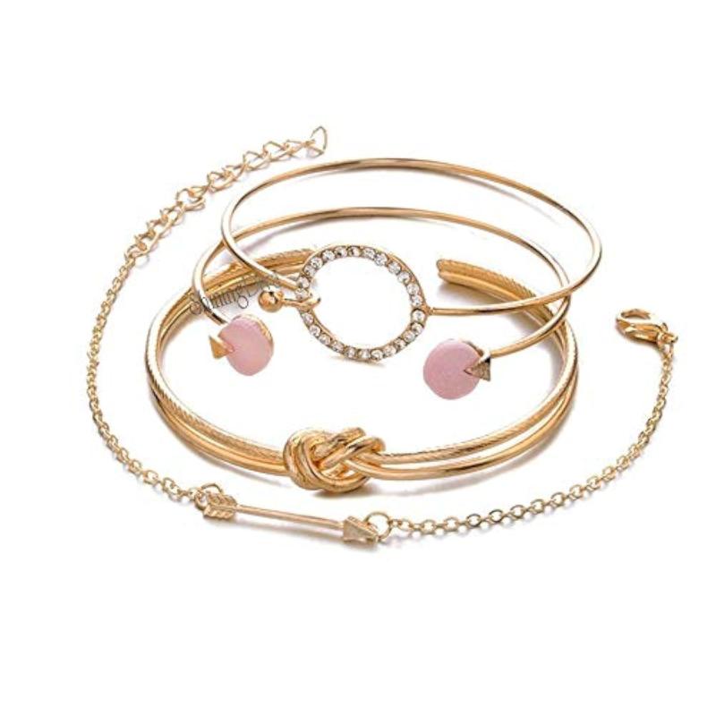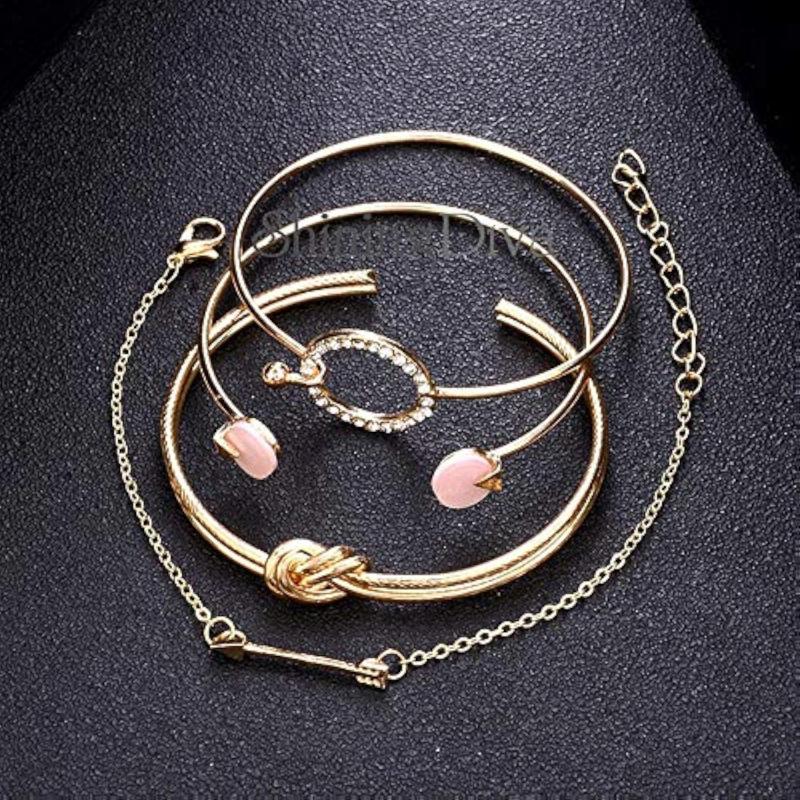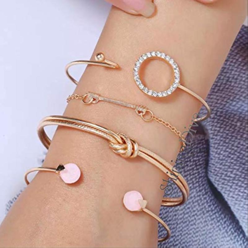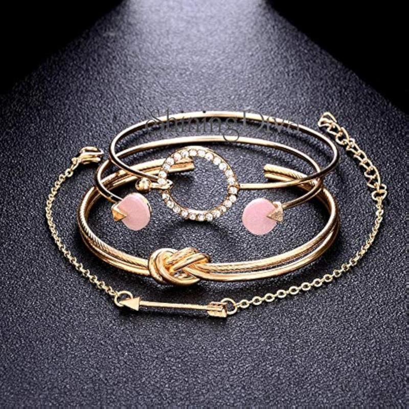 • Set of 4 stylish multilayer crystal bangle charm bracelets