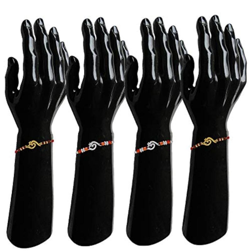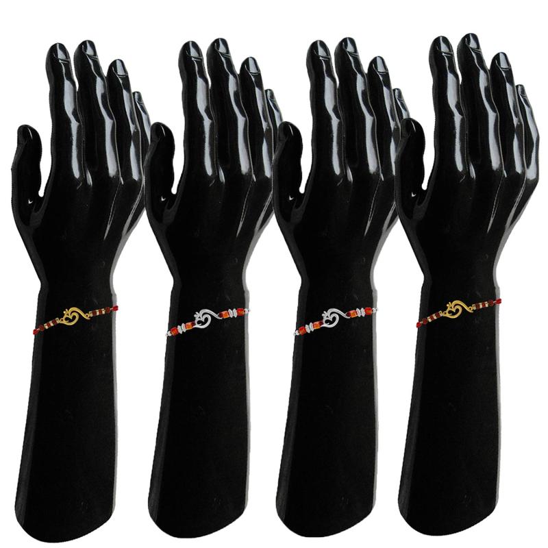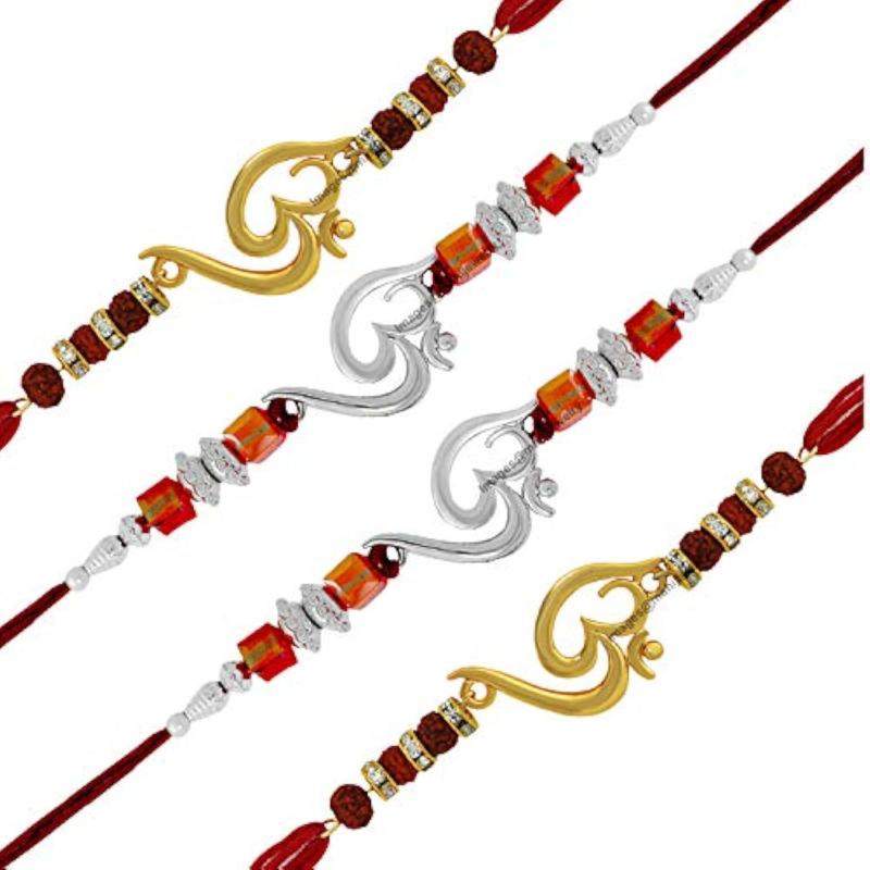 Beautiful combo of four Om rakhis featuring crystals and rudraksha beads, perfect for your beloved brothers.