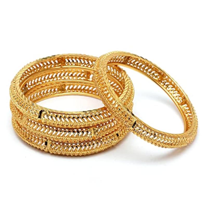 Elegant set of 4 plated classic textured bangles, suitable for traditional occasions or daily wear.