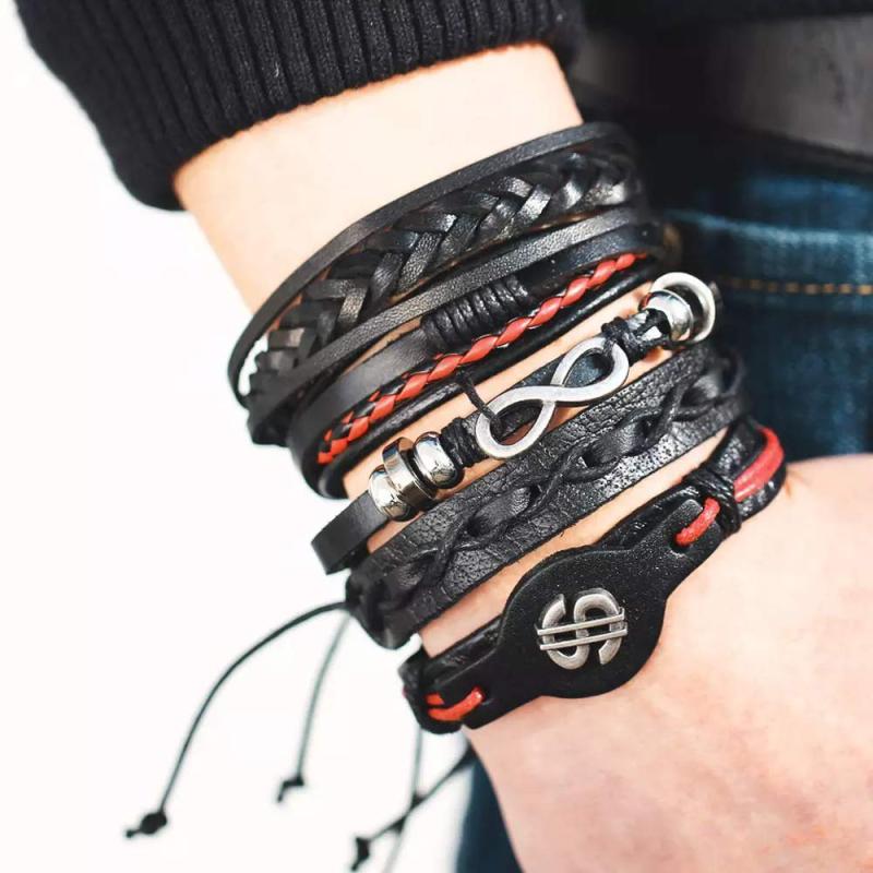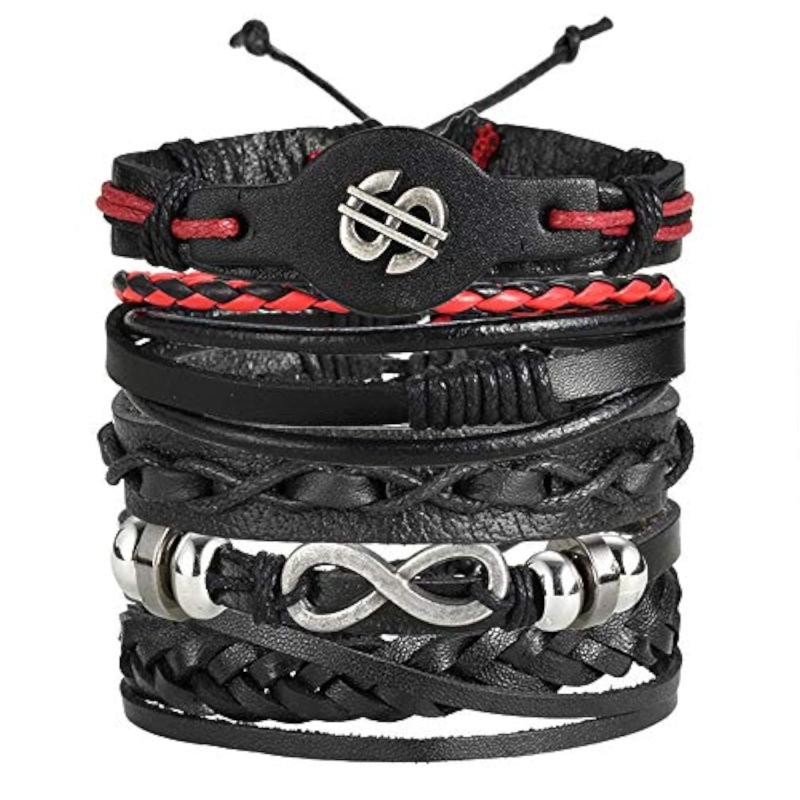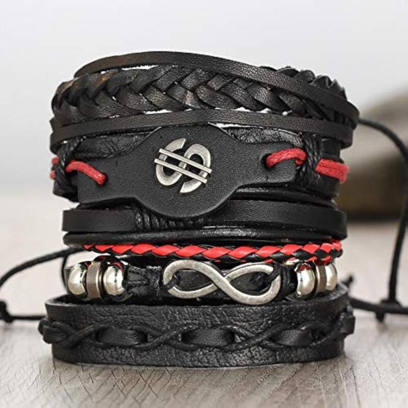 Add a touch of flair to your outfit with this set of 5 leather bracelets. Each bracelet features a stylish design that pairs well with any look.