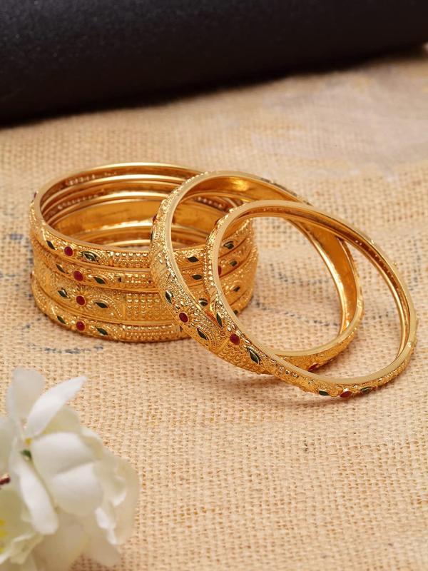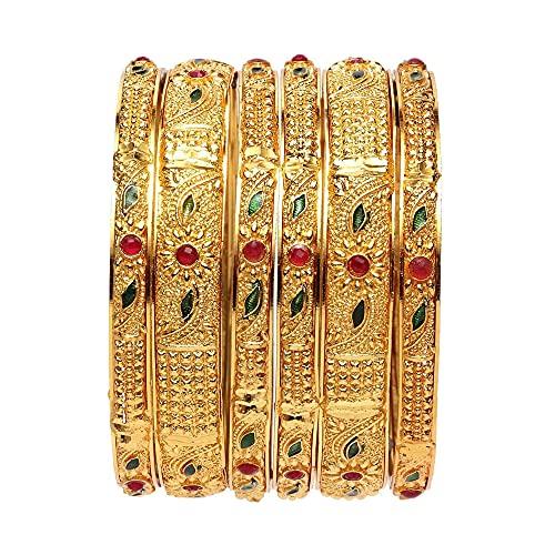 Enhance your traditional look with this set of 6 stylish plated bangles. Perfect for any occasion and outfit.