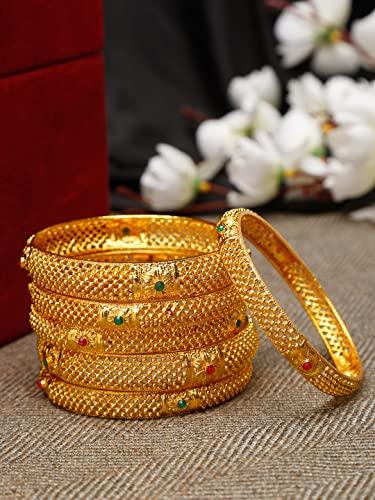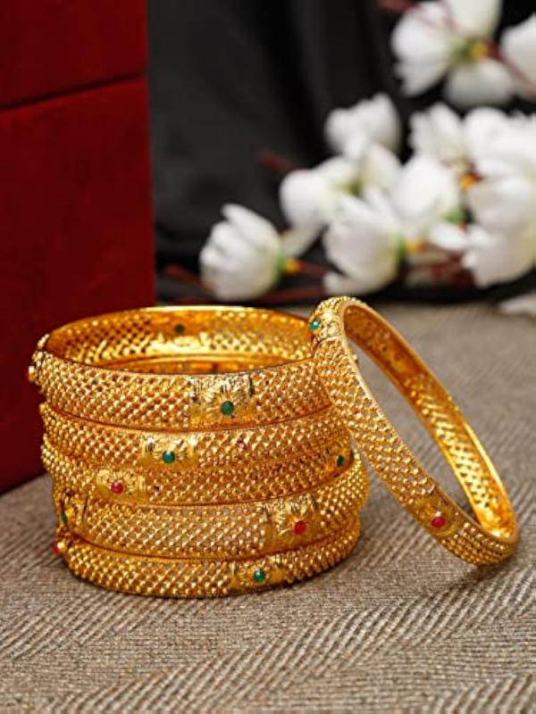 Add a touch of elegance to your outfit with this set of 6 stylish traditional bangles. Perfect for everyday wear or special occasions.