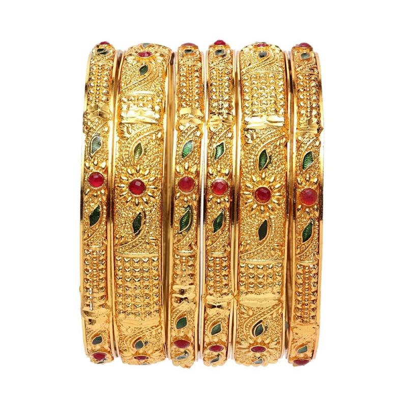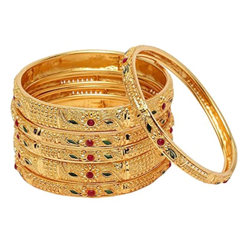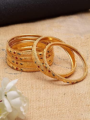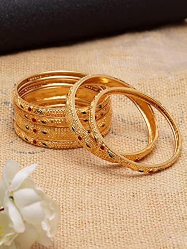 Enhance your traditional look with this set of 6 stylish plated bangles. Perfect for daily wear or special occasions.