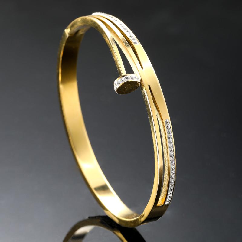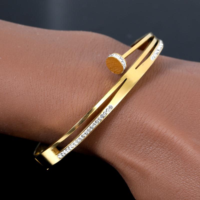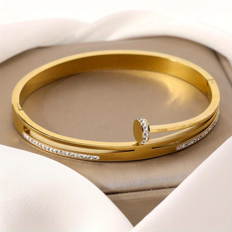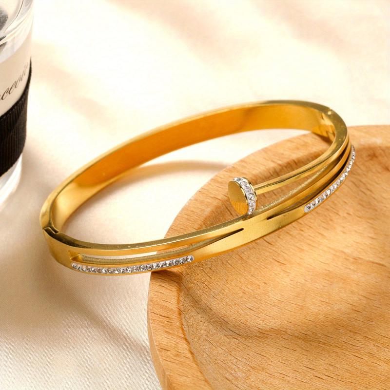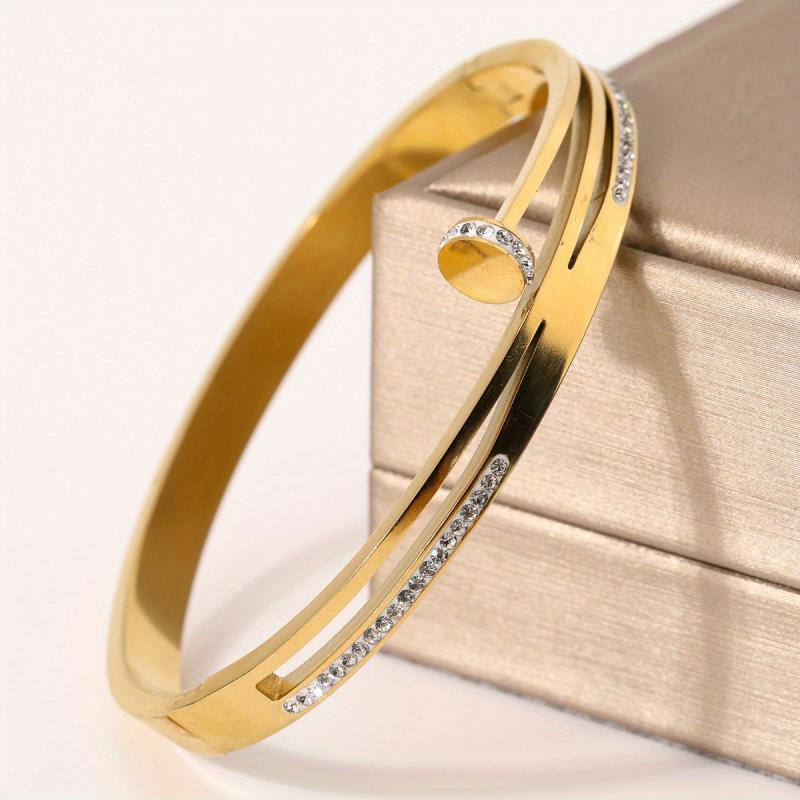 Elevate your style with this classic and shimmering stainless steel bangle featuring synthetic zirconia accents. Perfect for everyday wear and vacation getaways.