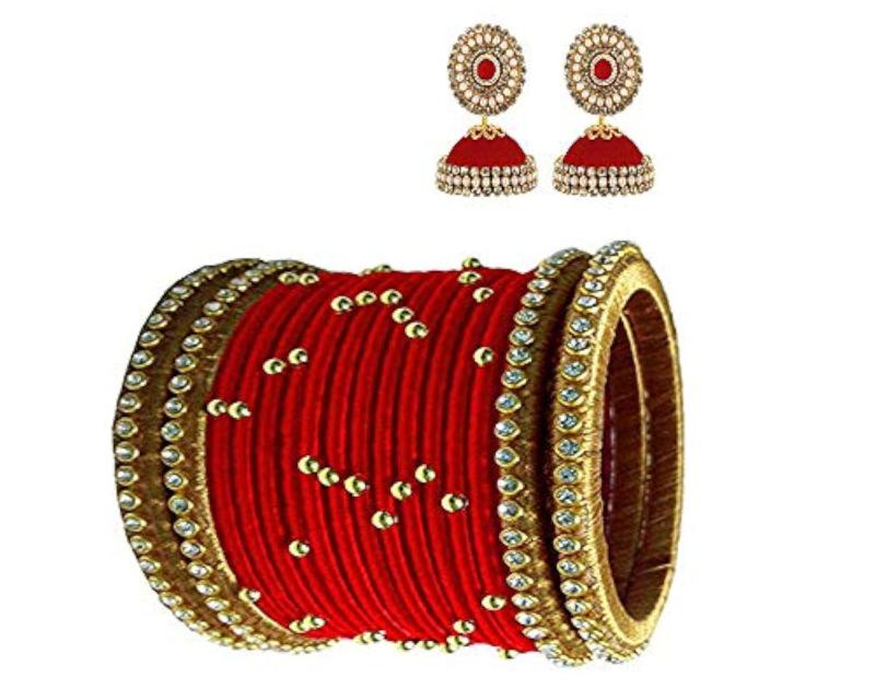 This set of 16 silk bangles is a perfect accessory for women and girls. The bangles are of size 2/10, making them suitable for various wrist sizes.