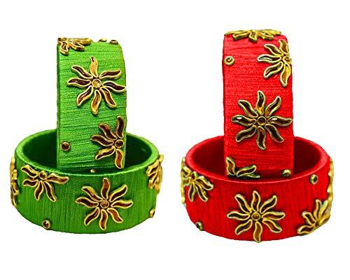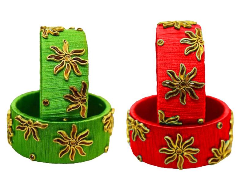Elegantly designed silk bangle set featuring 4 bangles in each set. Available in size 2/10.