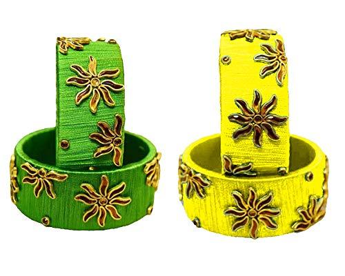 Add a touch of elegance to your outfit with these beautifully designed silk bangles. Each set includes 4 bangles in size 2/2, perfect for special occasions or everyday wear.