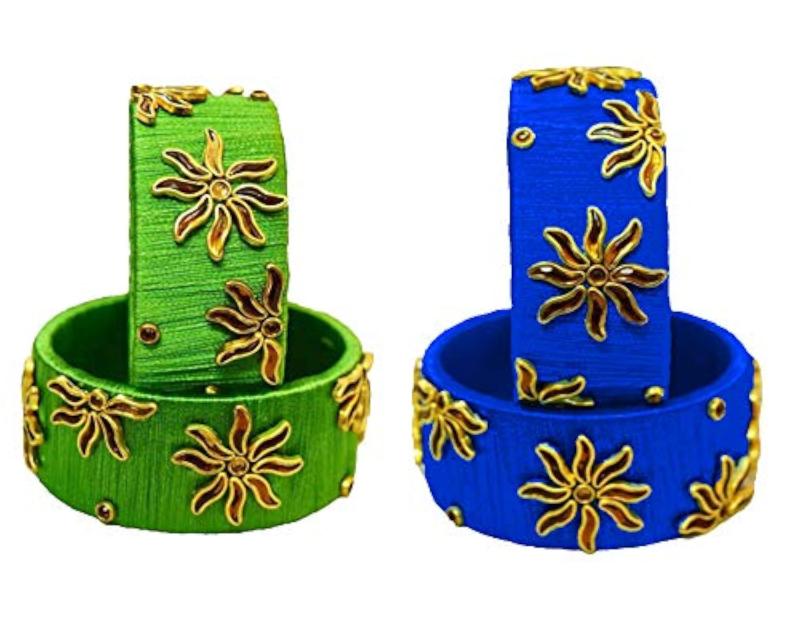 Elegantly designed silk bangles with Kindan detail. Includes 2 sets of 4 bangles (size-2/10).