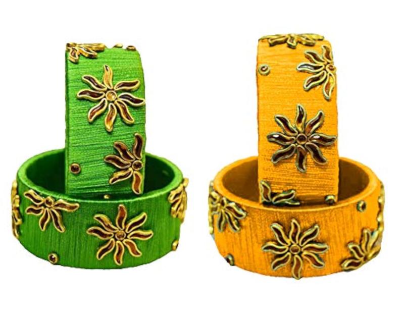Elegantly designed silk bangles to add a touch of glamour to your outfit.