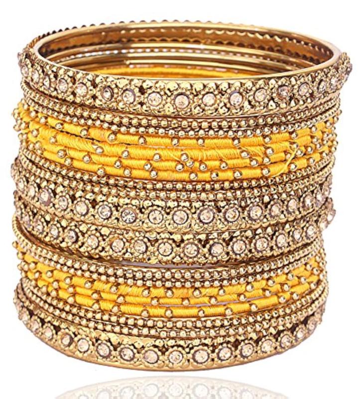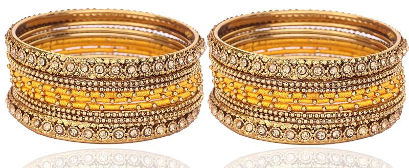This elegant silk fabric metal bangle is perfect for girls who want to add a touch of sophistication to their outfit. It features a beautiful design that will complement any attire.