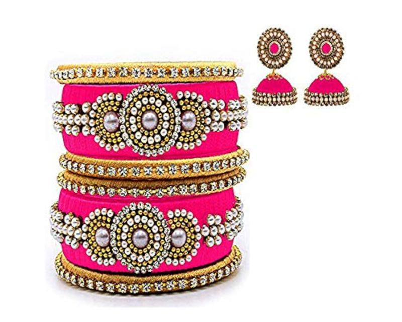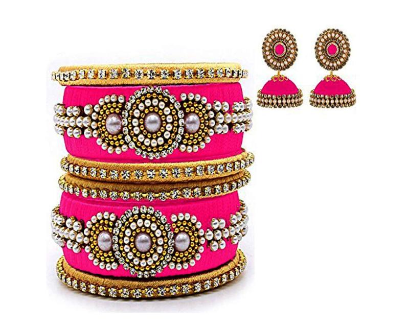 Elegant set of silk pearls bangles and earrings in a size 2/10.