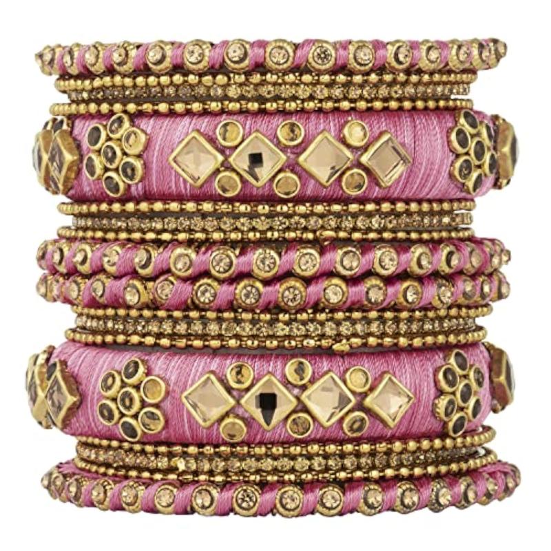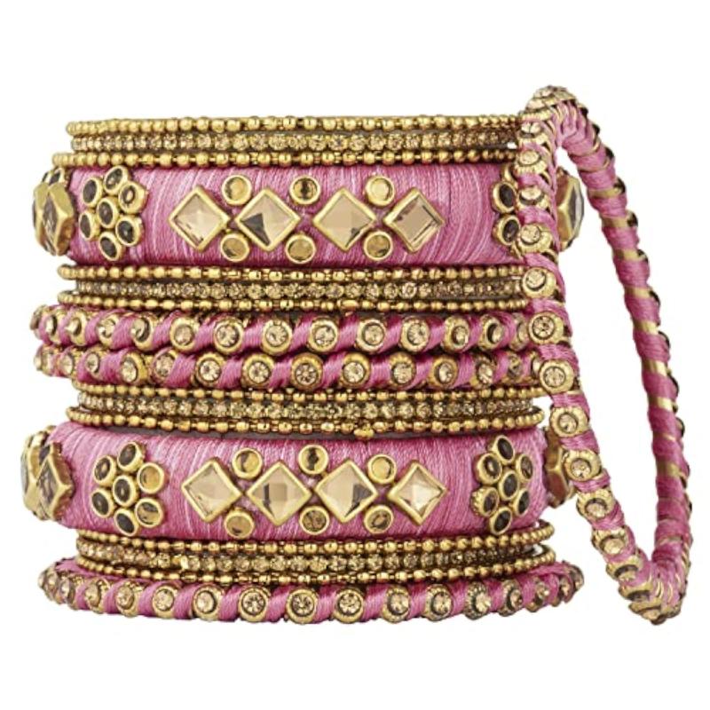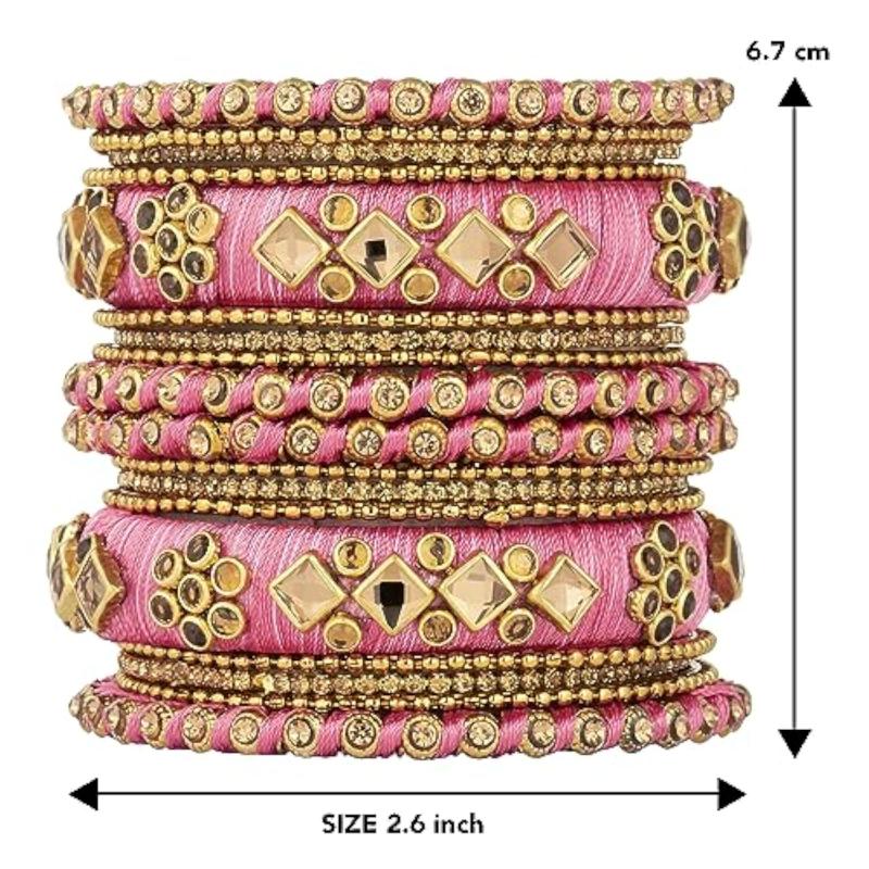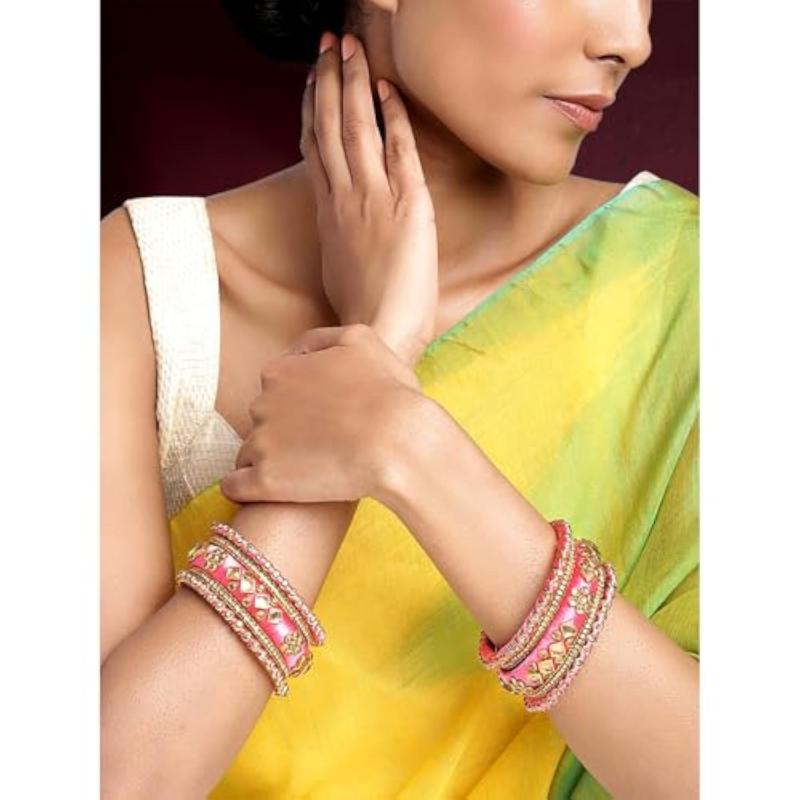 Elegant and traditional bangles chuda set made of silk thread, brass, and kundan. Perfect accessory for all occasions.