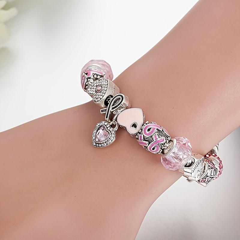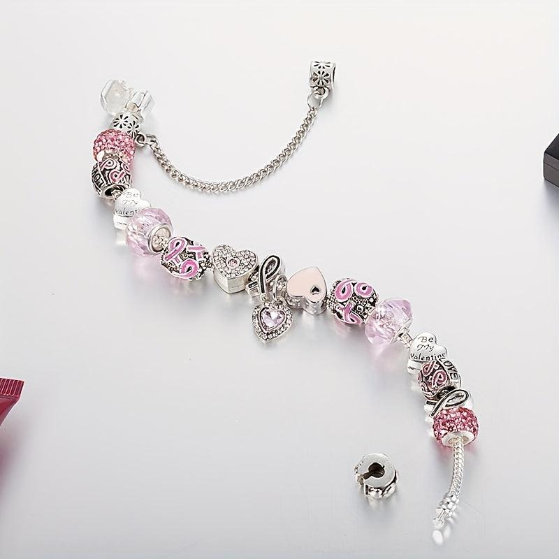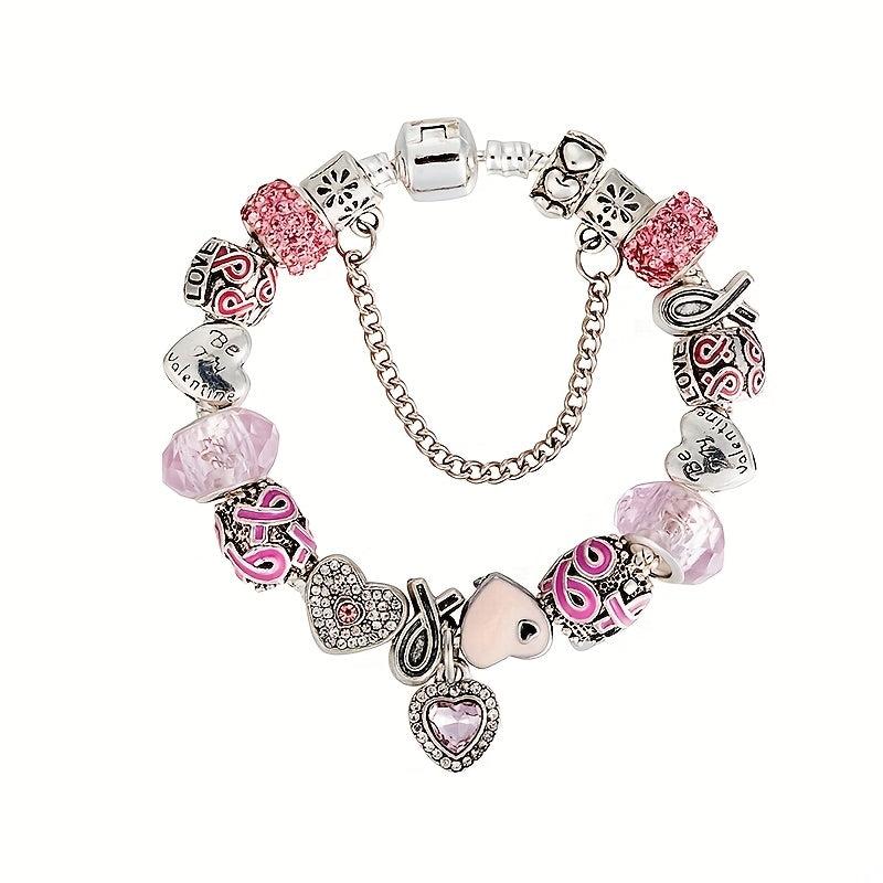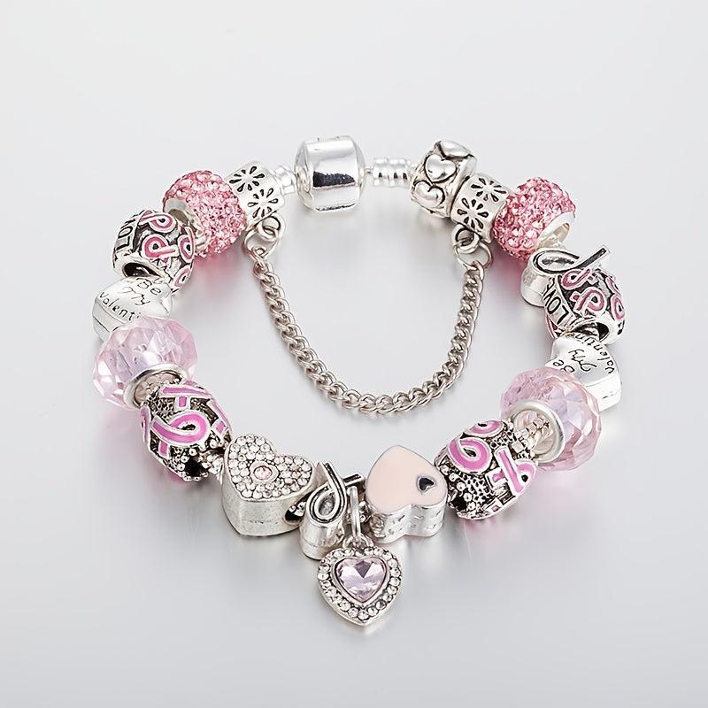 Elegant silver plated stainless steel bracelet with rhinestone heart pendant. Perfect friendship gift for daily wear in all seasons.