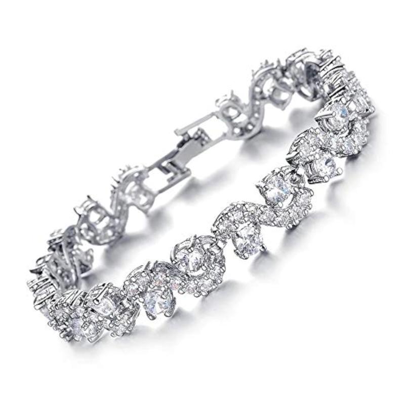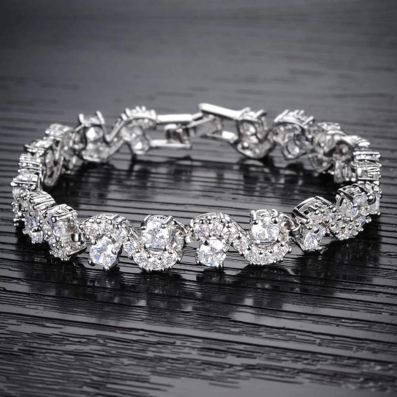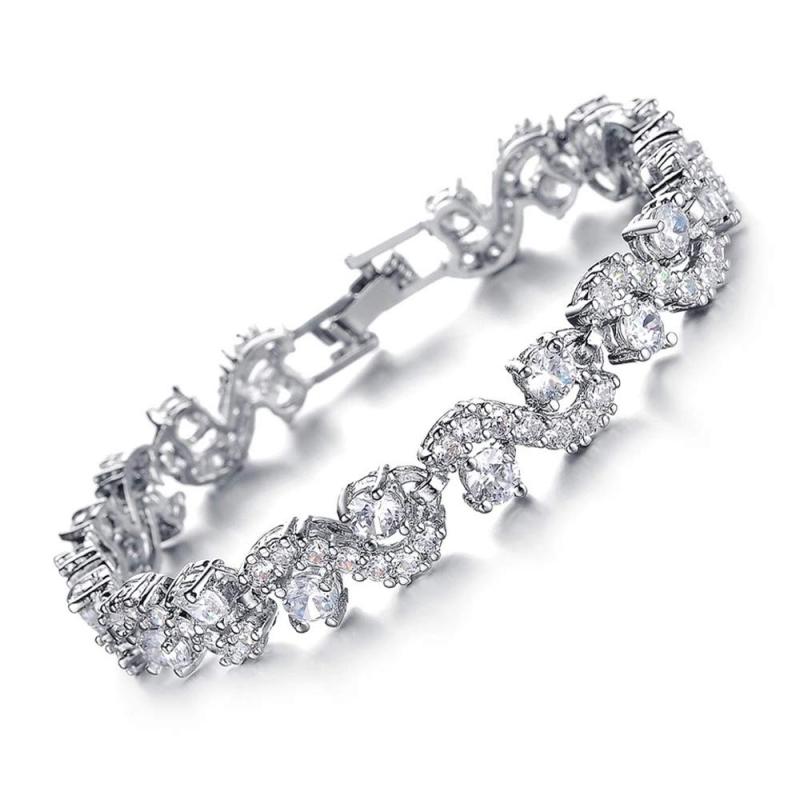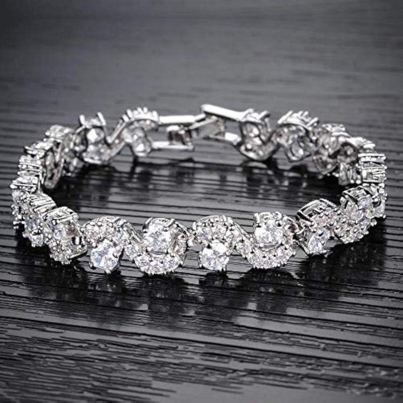 Add a touch of elegance with this stylish AAA crystal charm bracelet, featuring silver plating and sparkling cubic zirconia.