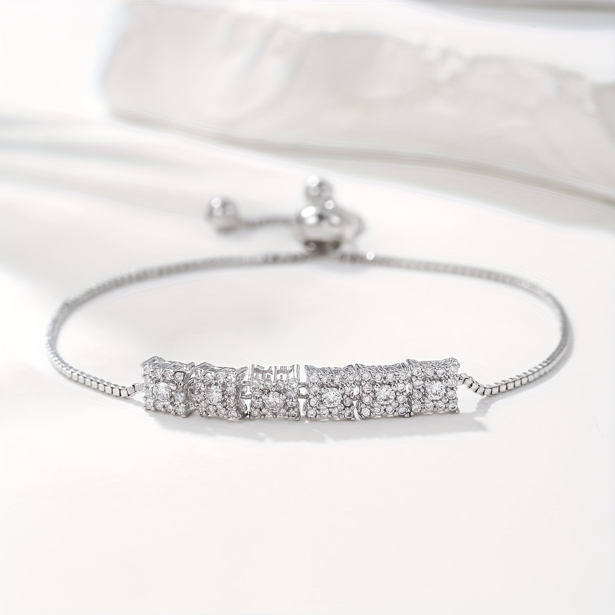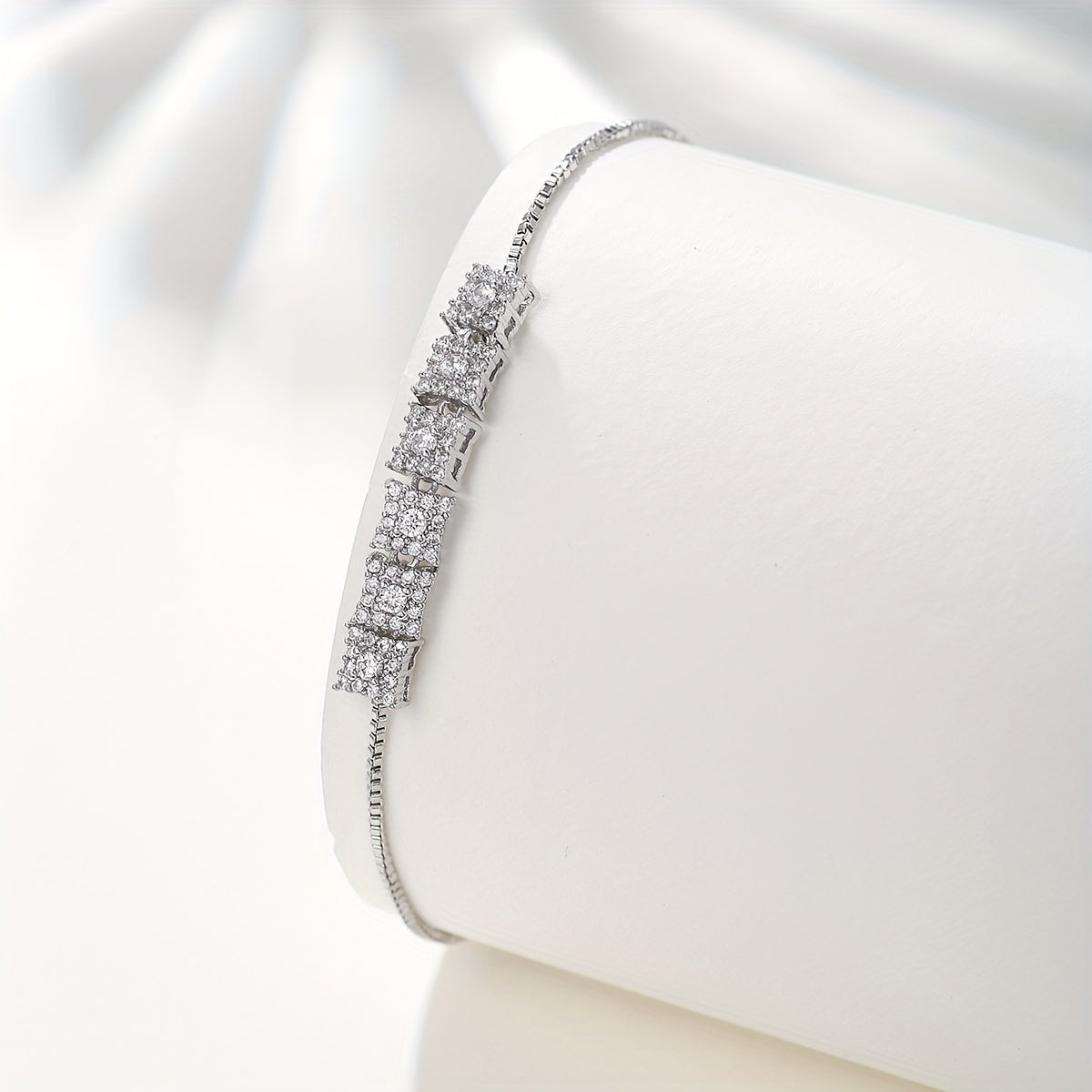 This elegant bracelet features sparkling zircon stones set in a silver-plated design. It is the perfect accessory for any outfit, adding a touch of glamour and sophistication.