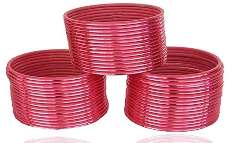 Enhance your festive look with this set of glossy silver tone metal bangles. Perfect for weddings and special occasions.