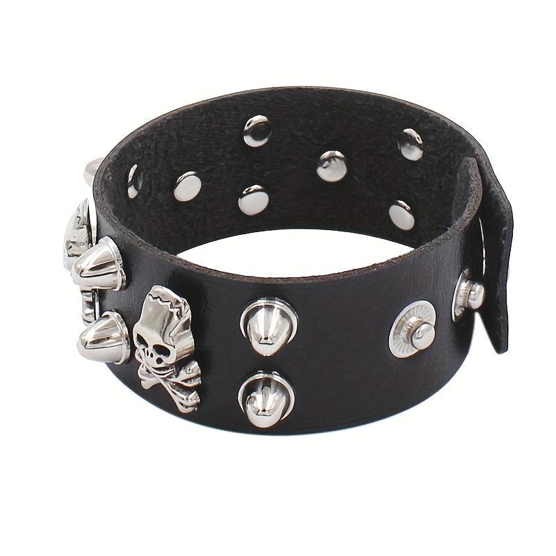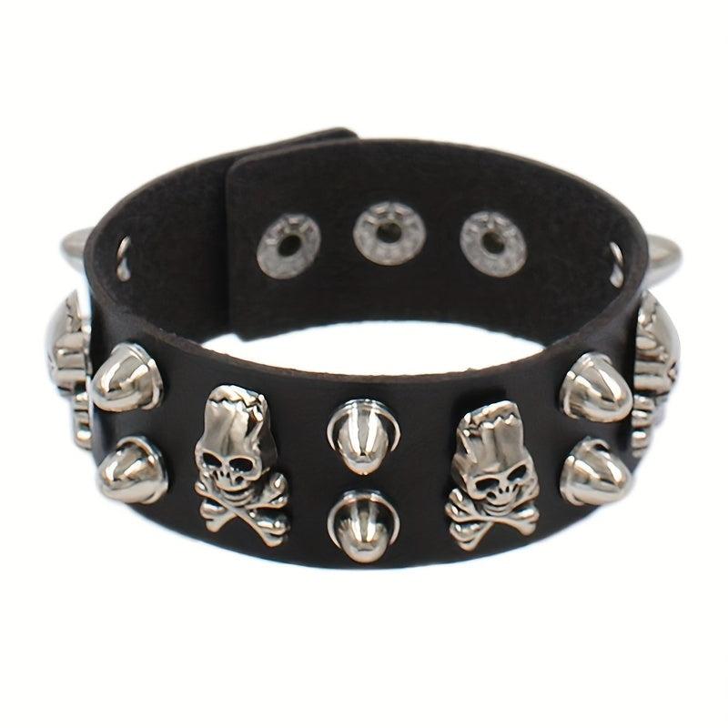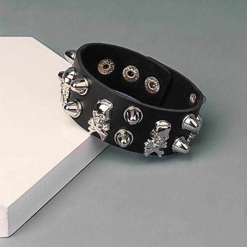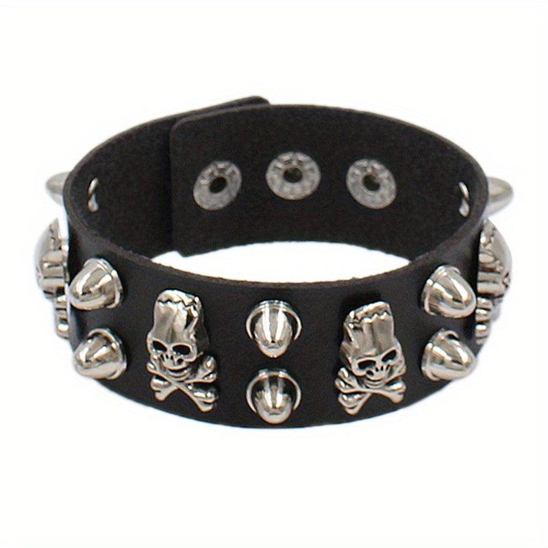 Embrace a punk style with this skull head rivet PU leather bracelet, a unique and edgy hand jewelry decoration suitable for all genders.