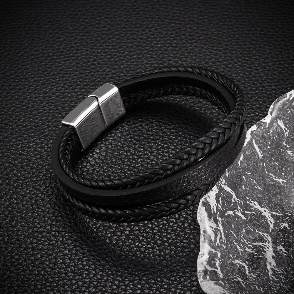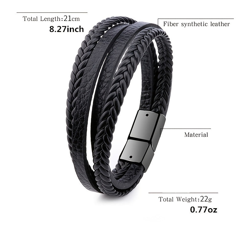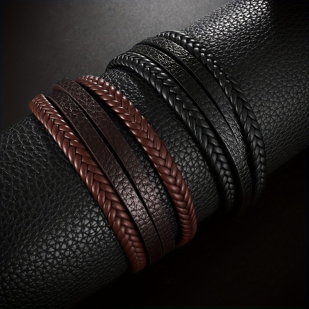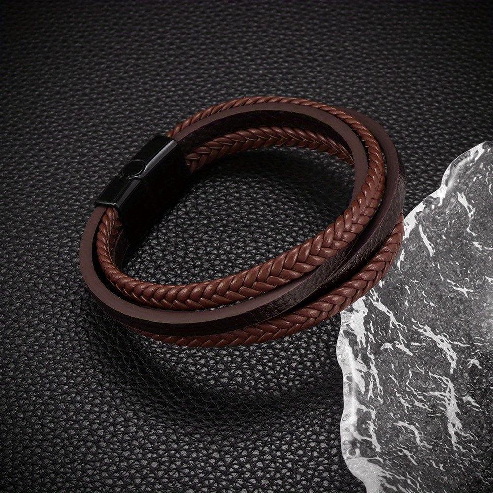 This retro European and American bracelet features a hand-woven leather rope with an alloy magnetic buckle, perfect for a unique style statement.