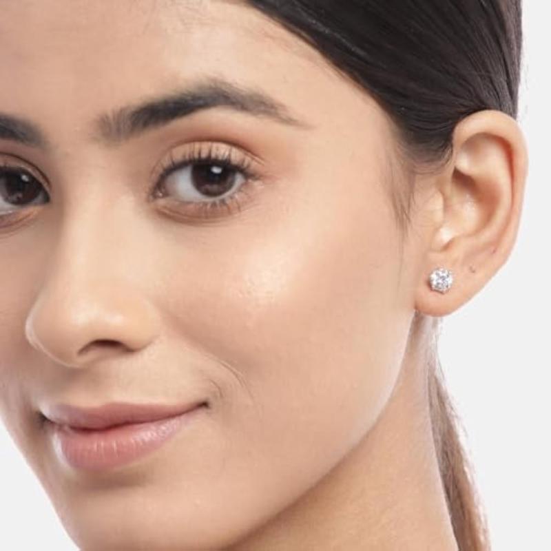 These stunning stud earrings feature a solitaire CZ stone set in 925 pure silver. Perfect for adding a touch of elegance to any outfit.