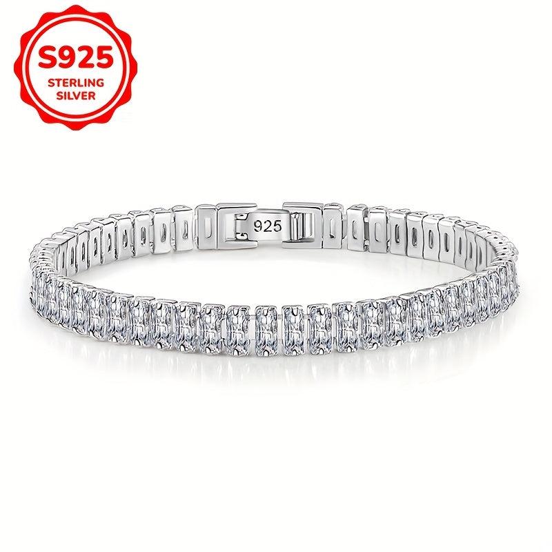 Elevate your style with this dazzling square synthetic Zirconia bracelet set. Crafted from 925 silvery material, this anti-allergic bracelet is perfect for daily wear.