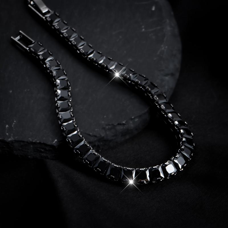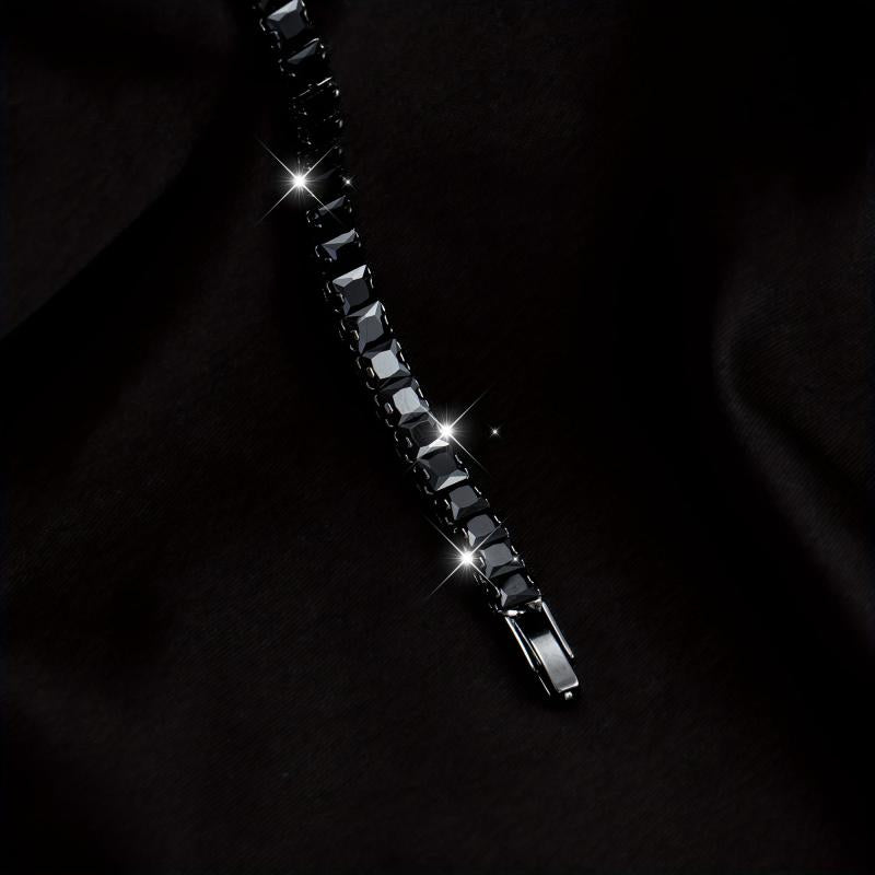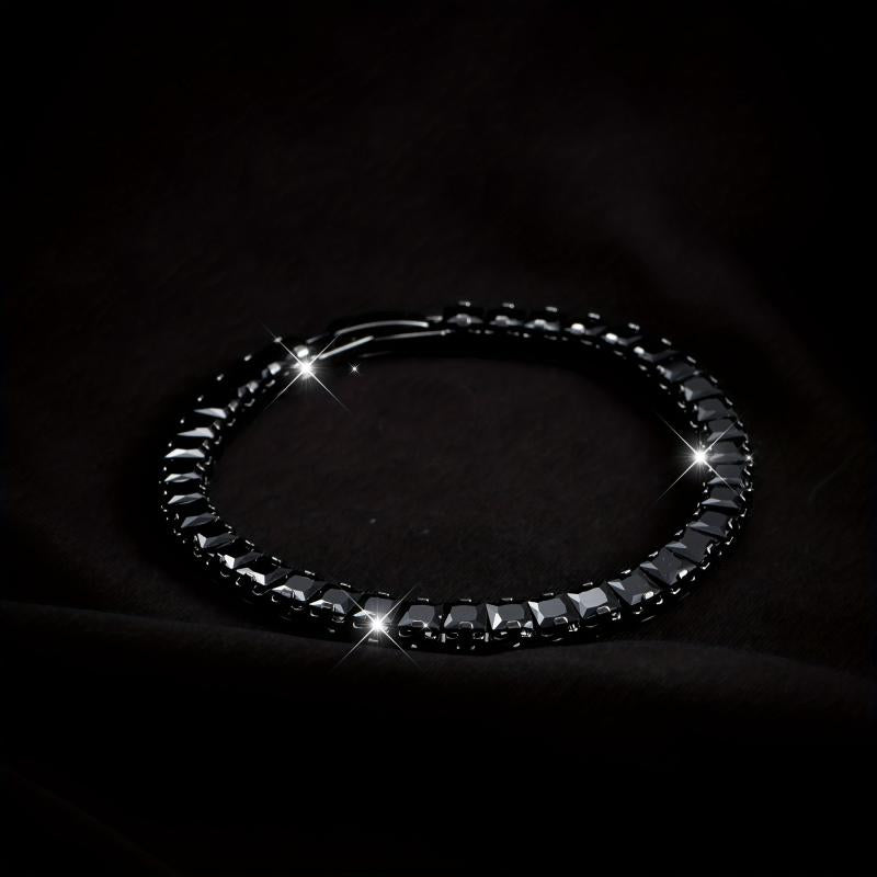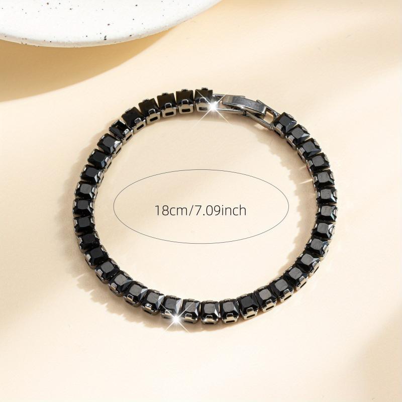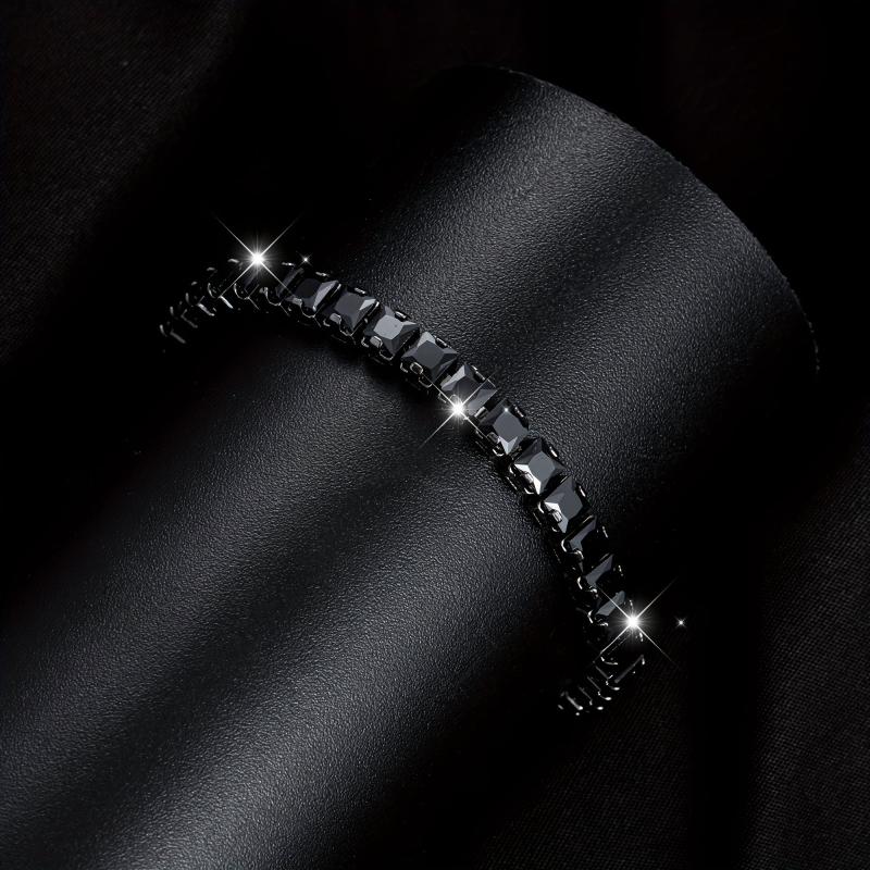 Add a touch of gothic flair to your outfits with this square tennis bracelet. Made of hypoallergenic copper with synthetic zirconia accents, it's perfect for daily wear during spring and summer.
