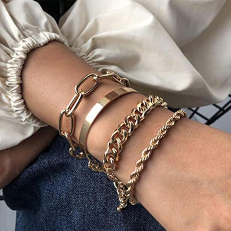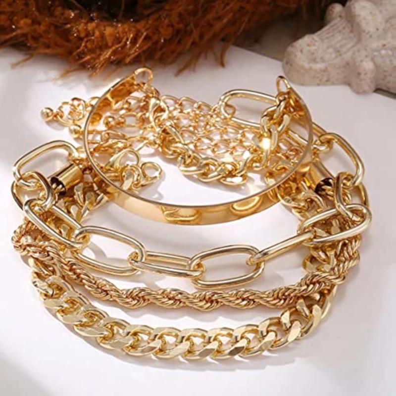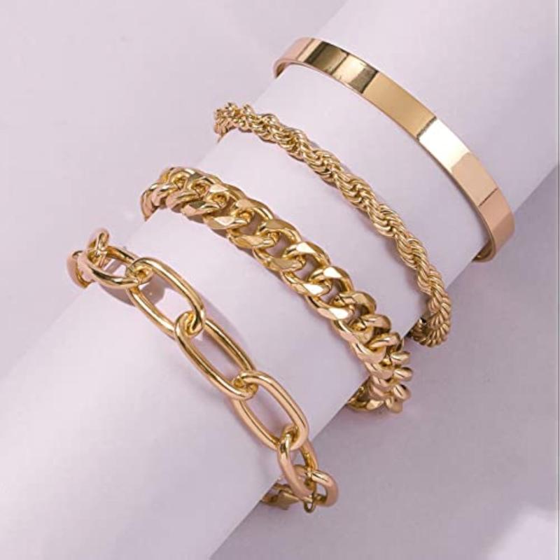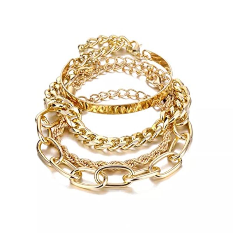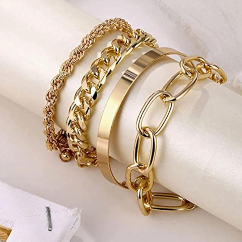 Elevate your style with this set of 4 stackable bracelets plated in gold. The perfect accessory for any outfit.
