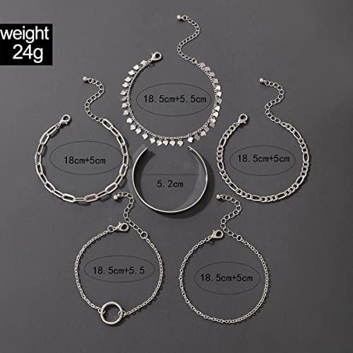 Stackable Bracelet Set of 6 in Silver Tone for Women