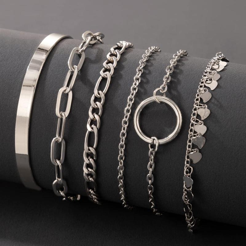 Elevate your style with this sleek and modern set of 6 stackable bracelets. Made with silver-plated metal, these bracelets are perfect for adding a touch of sophistication to any outfit.