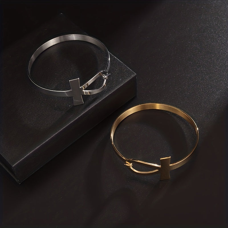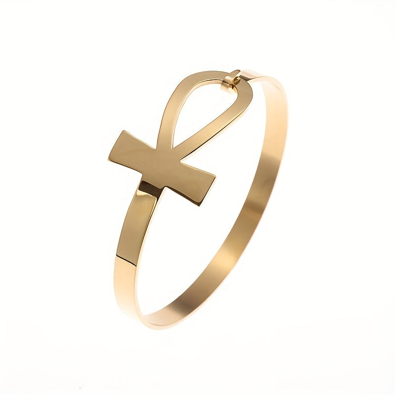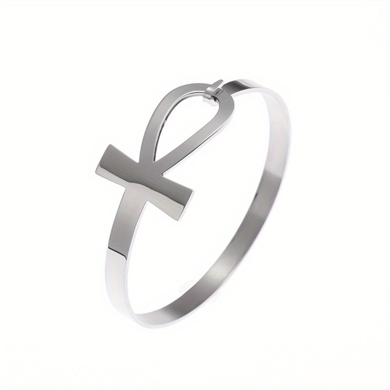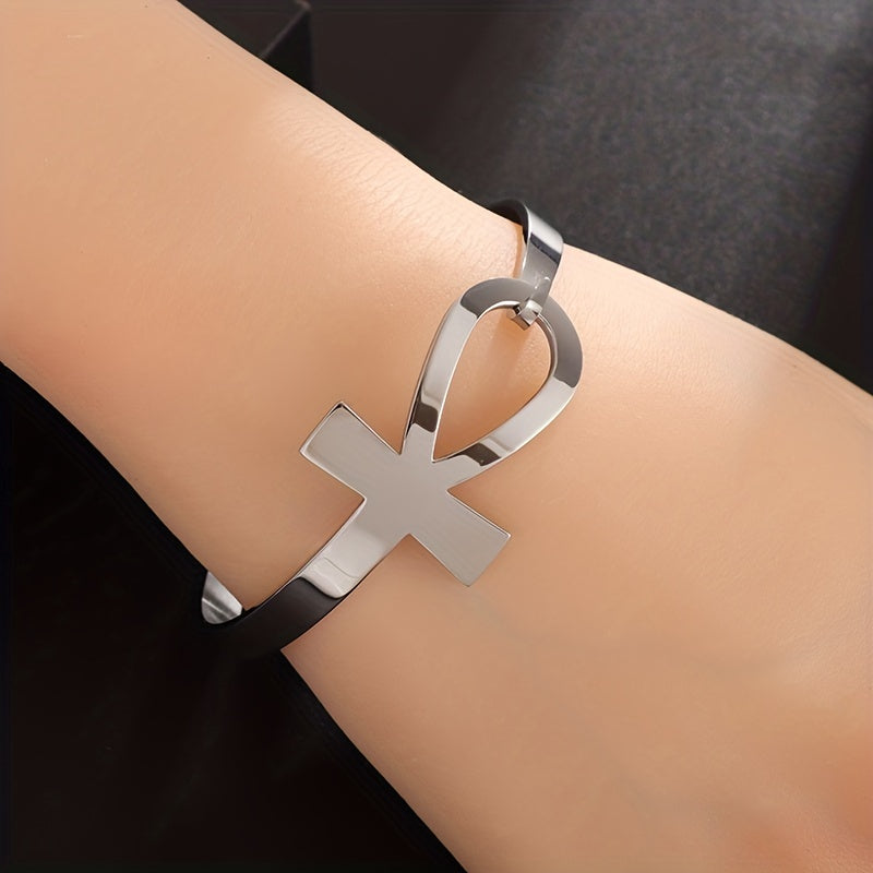 Add a touch of ancient Egypt charm to your look with this stainless steel cross bracelet. Available in golden and silver finishes for men and women.