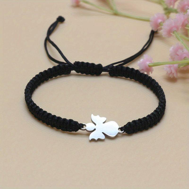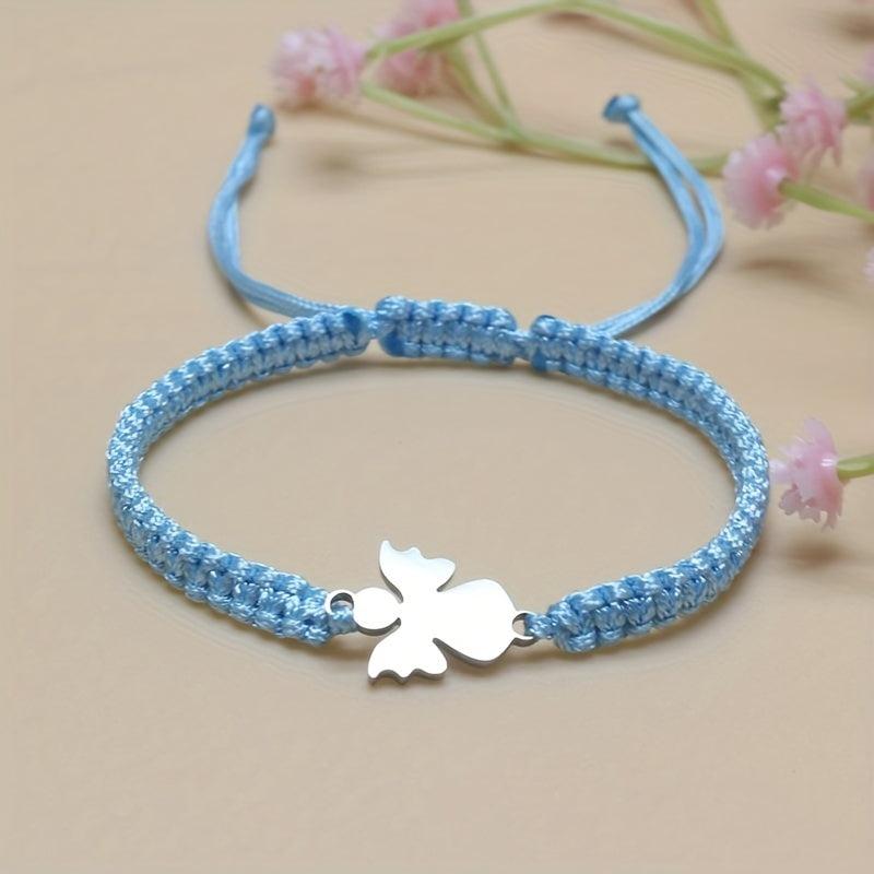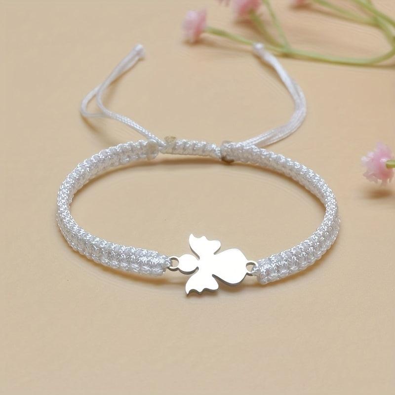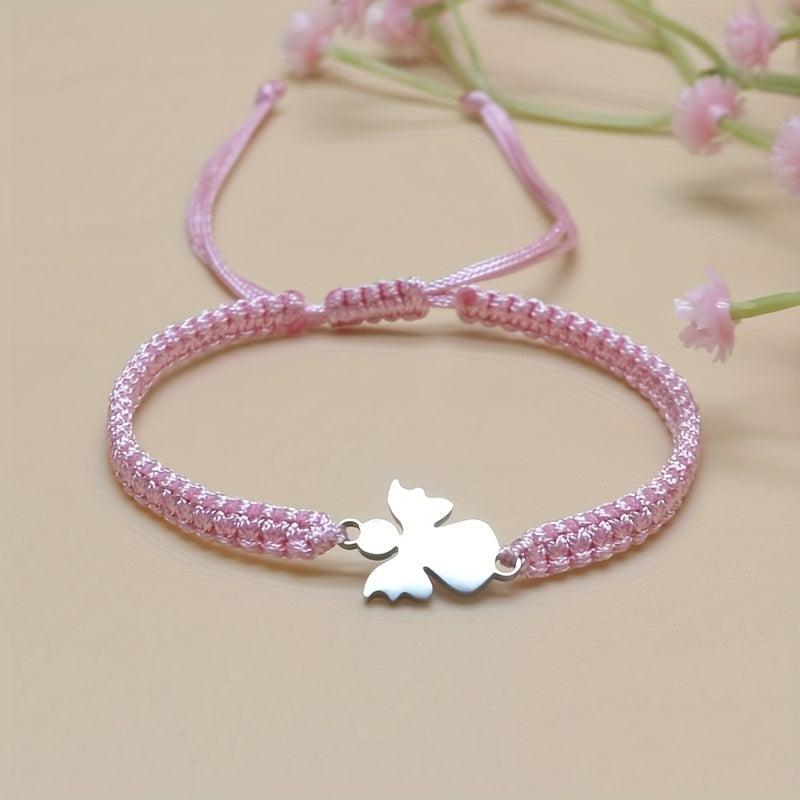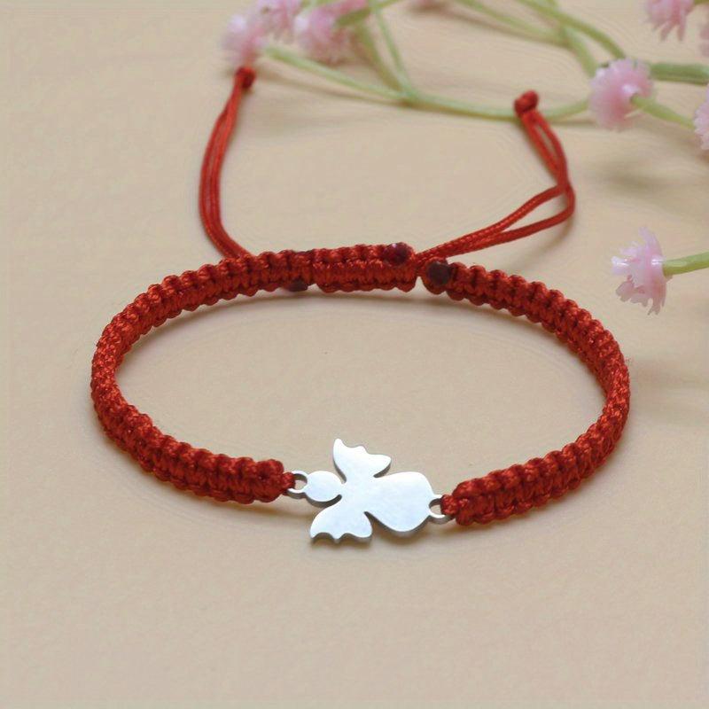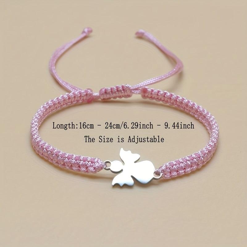This charming stainless steel bracelet features an angel charm and sparkling pink beads on an adjustable red cord. Perfect gift for Mother's Day or Back to School.