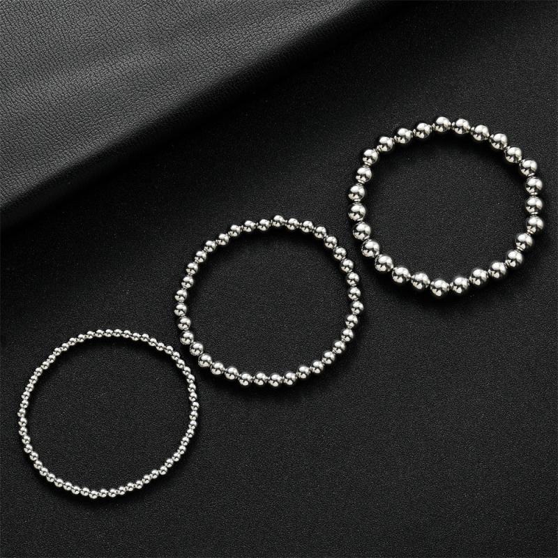 Stainless Steel Beaded Elastic Bracelet Unisex - Couple Gift
