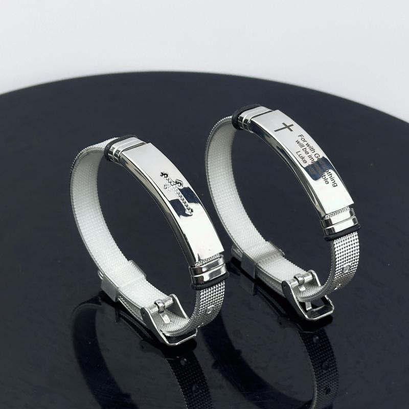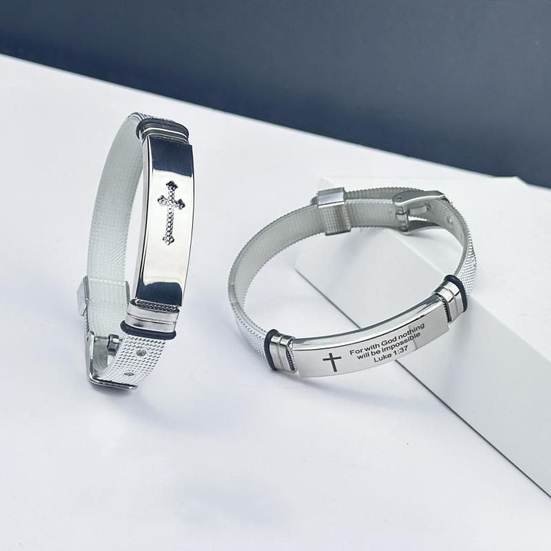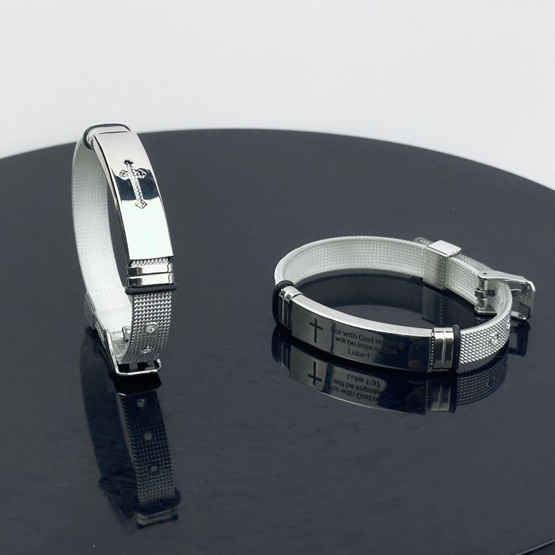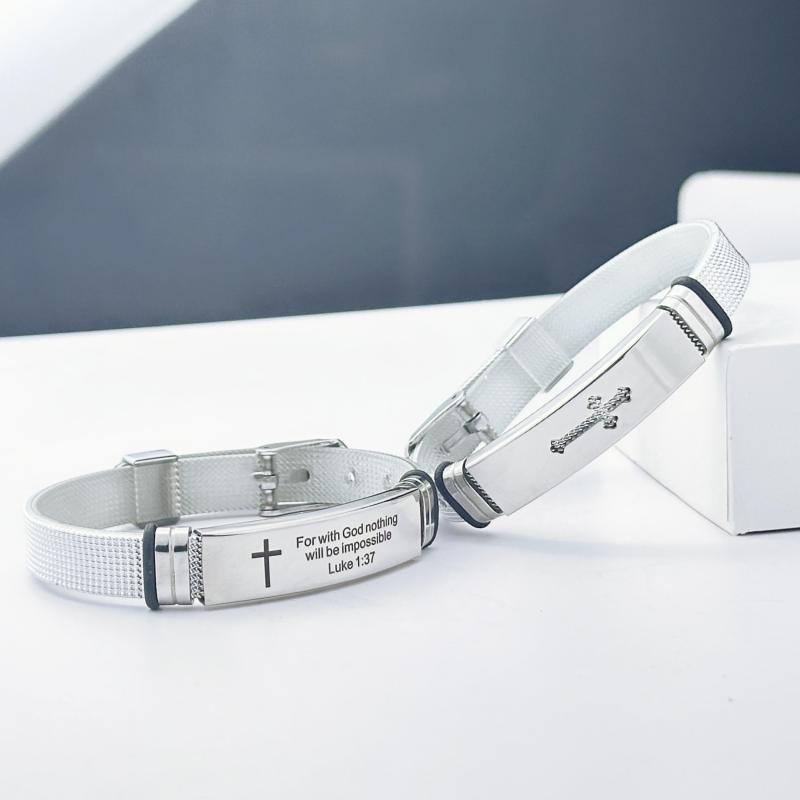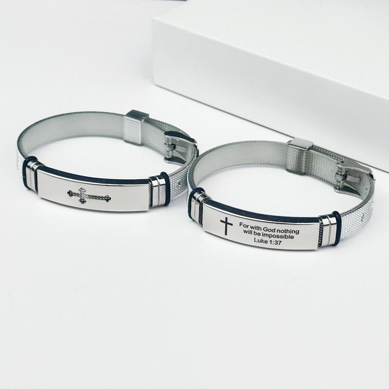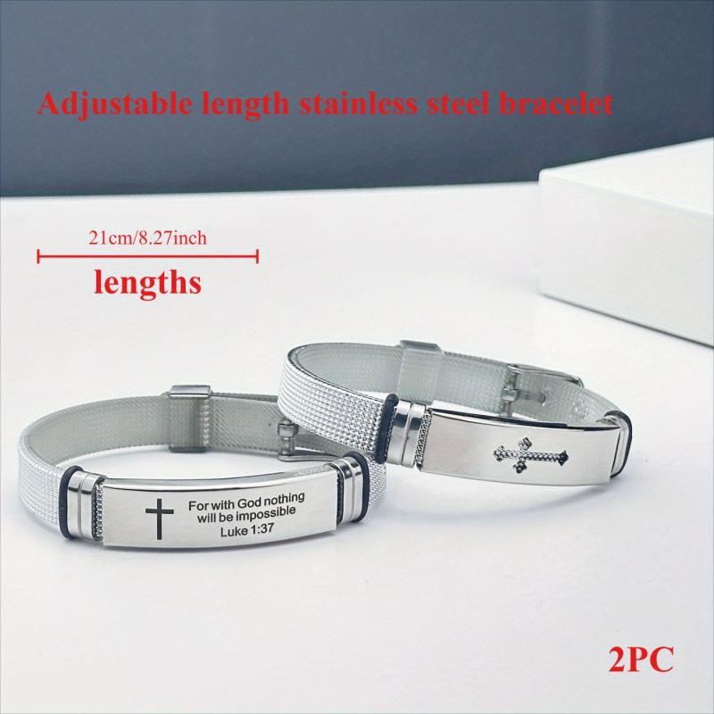 Embrace daily inspiration with this adjustable cuff bracelet set featuring uplifting Bible quotes. Crafted from durable stainless steel, these cuffs are perfect for daily wear.
