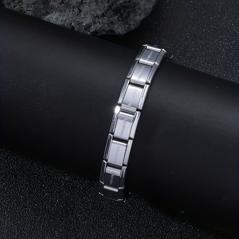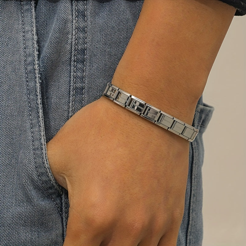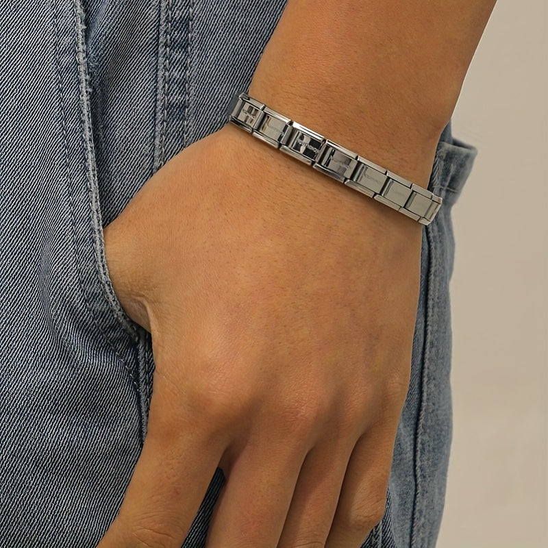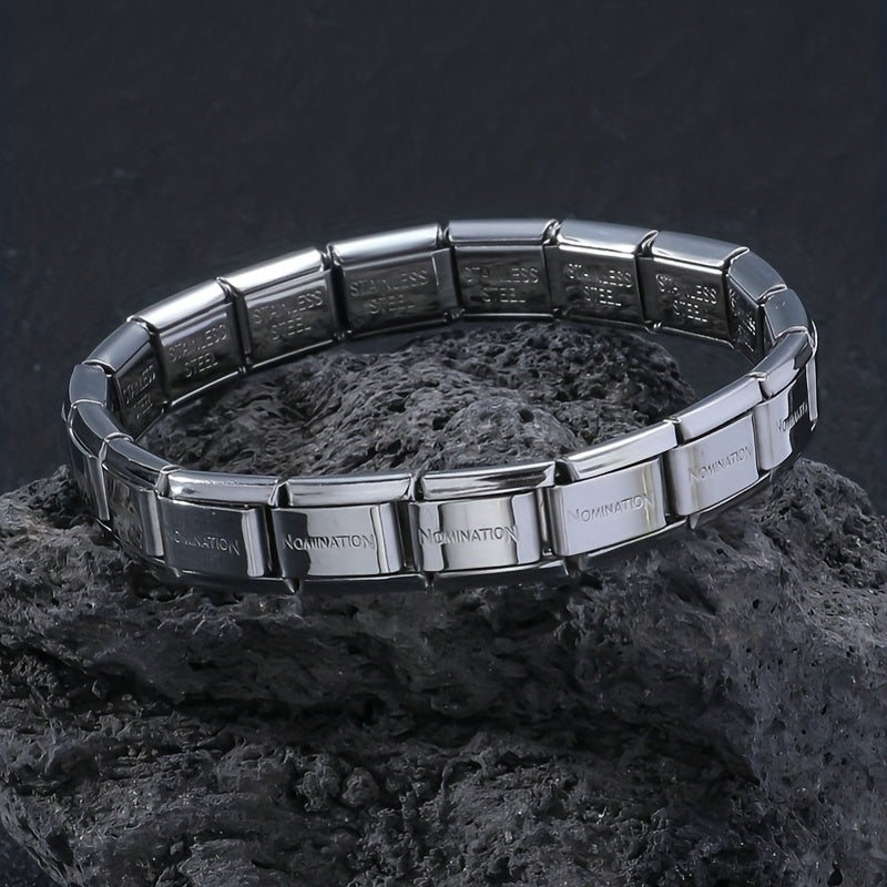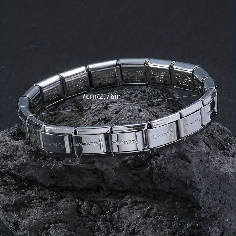 This stylish stainless steel bracelet is designed for men. It features a stretch design with titanium steel material, making it a durable and fashionable accessory.