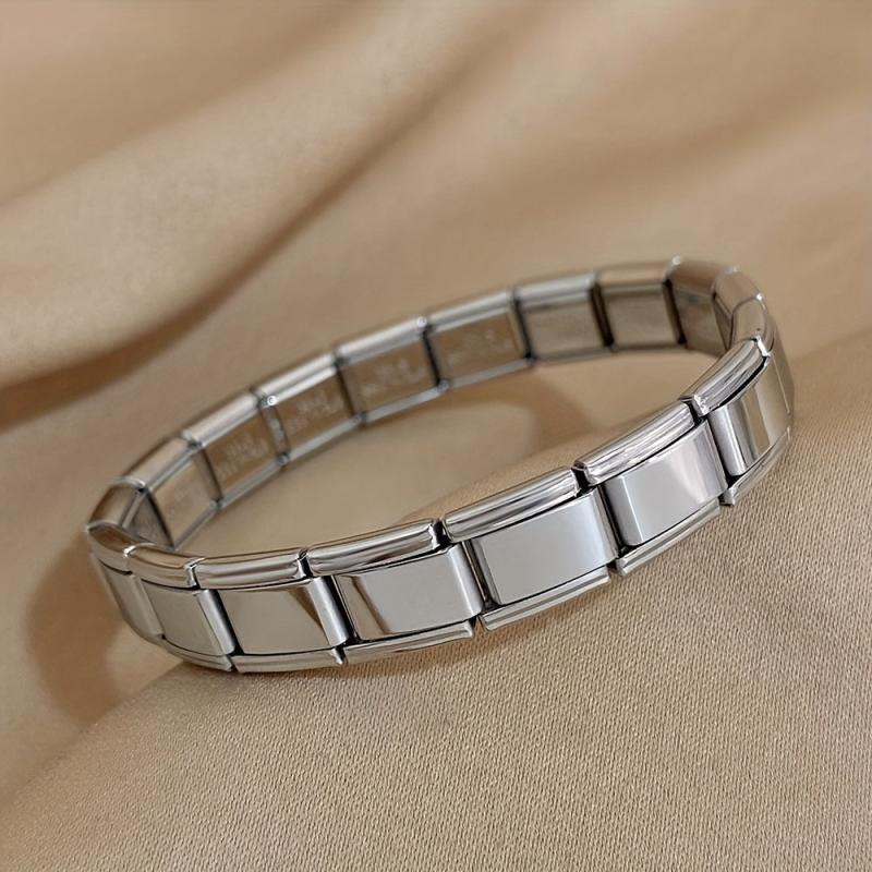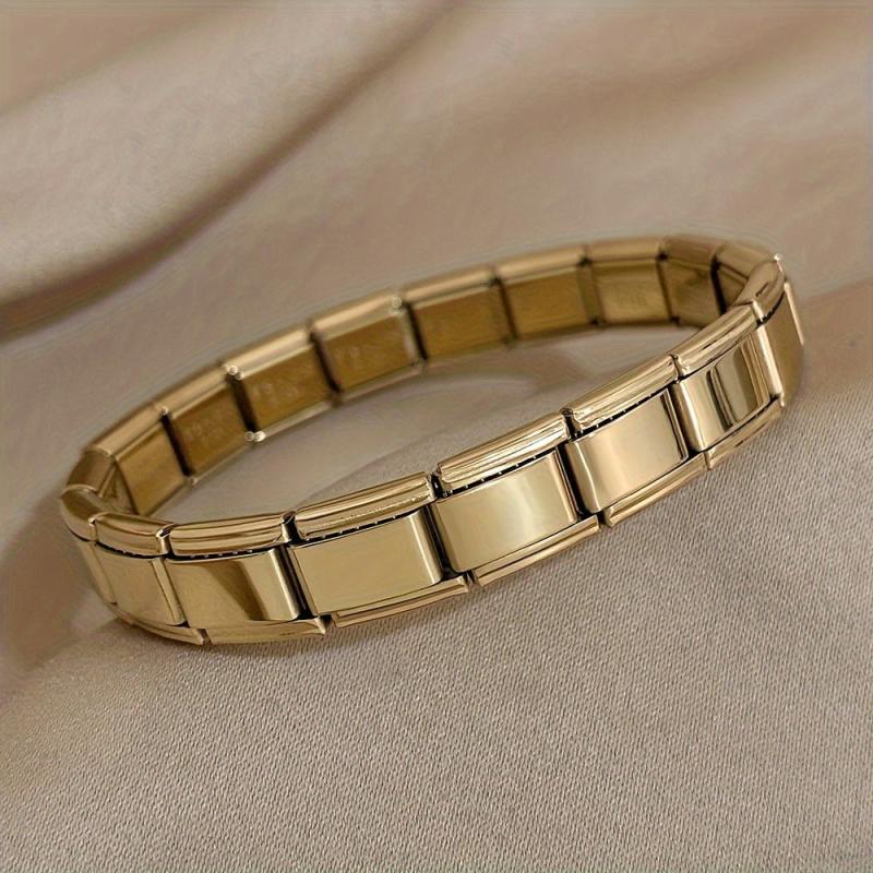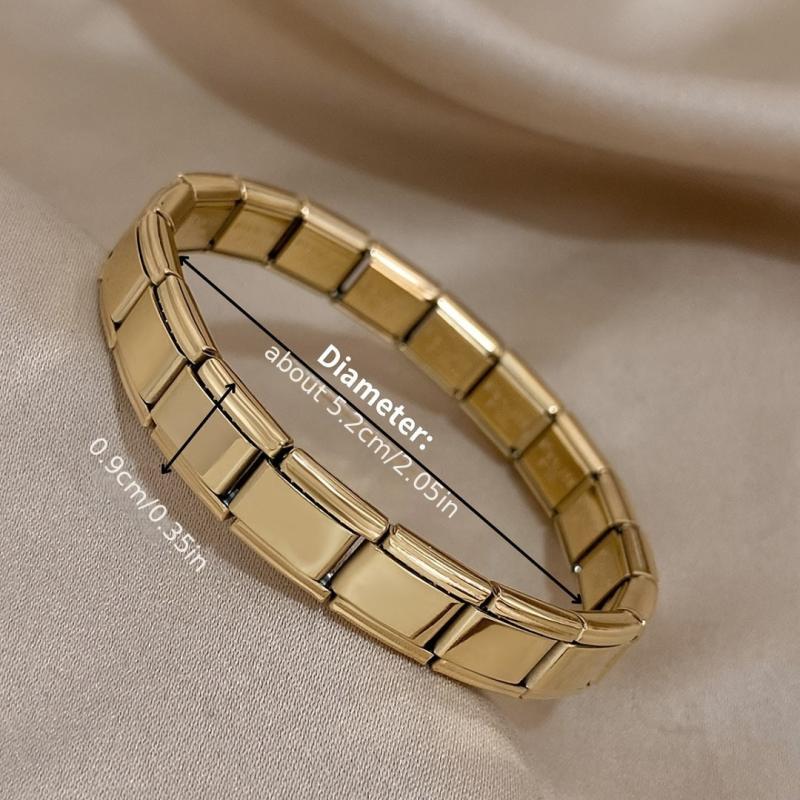 This chunky square cuff bracelet is made of stainless steel, providing durability and a stylish look. It features a wide elastic watch band design suitable for both women and men. Perfect as a jewelry gift for New Year's.