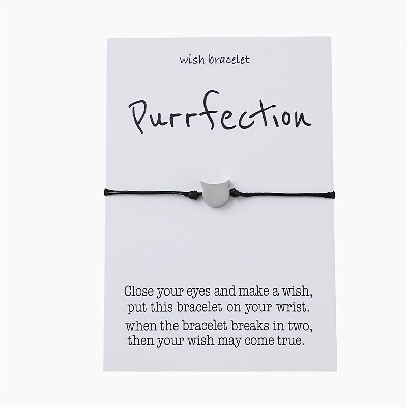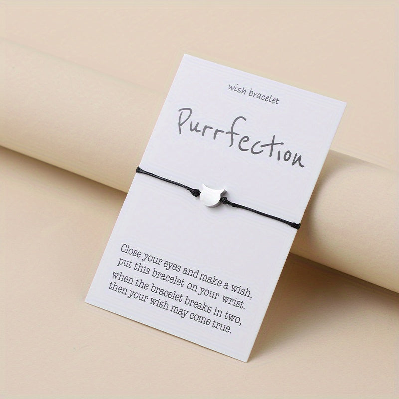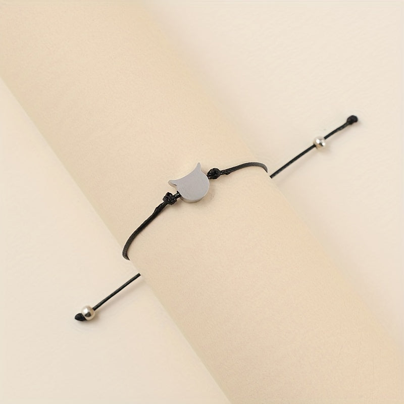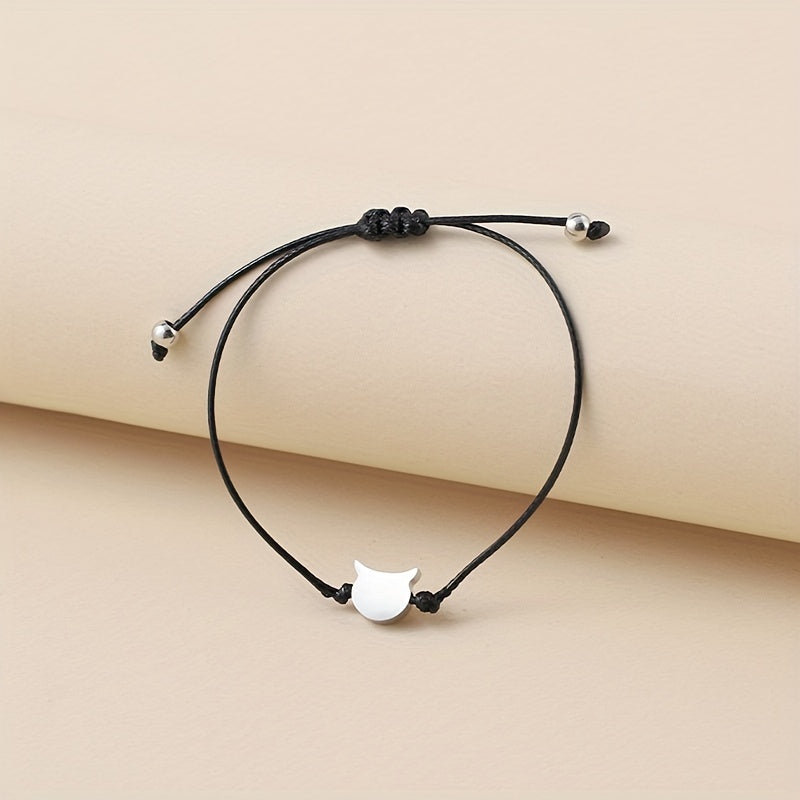 This minimalist style hand decoration features a stainless steel cat head charm on a woven bracelet. It's a perfect gift for cat lovers.