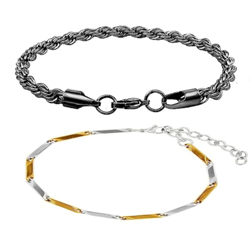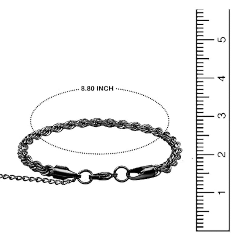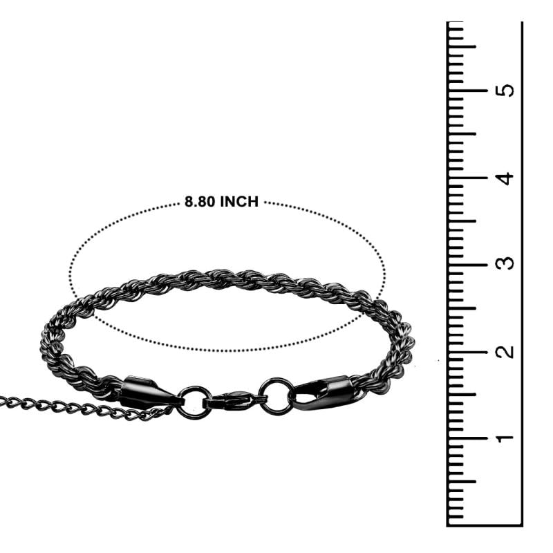 Elevate your style with this stainless steel chain wrist bracelet in black and silver. It adds a touch of edgy sophistication to any outfit.