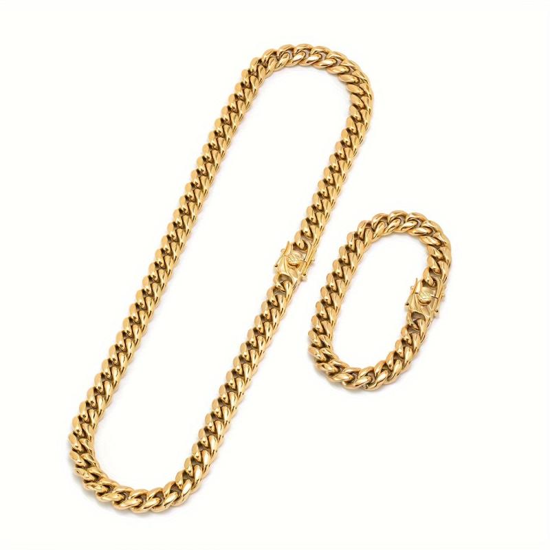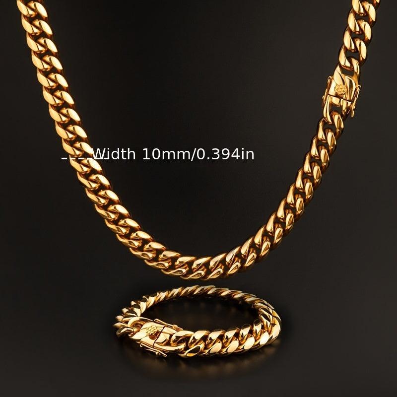 Upgrade your style with this stainless steel Cuban bracelet and necklace set. The 10mm width and hip hop punk design make it a perfect accessory for both men and women.