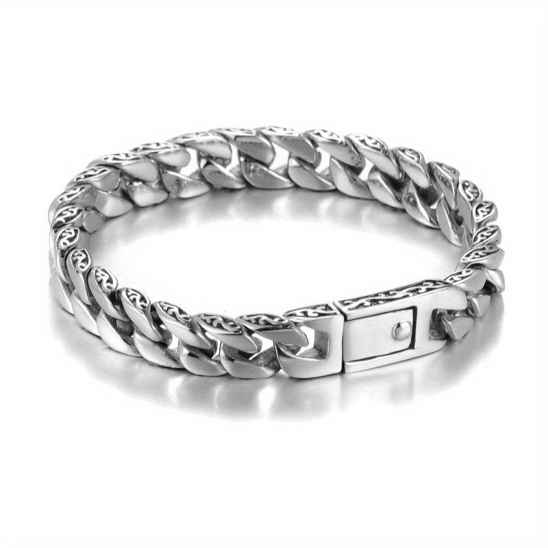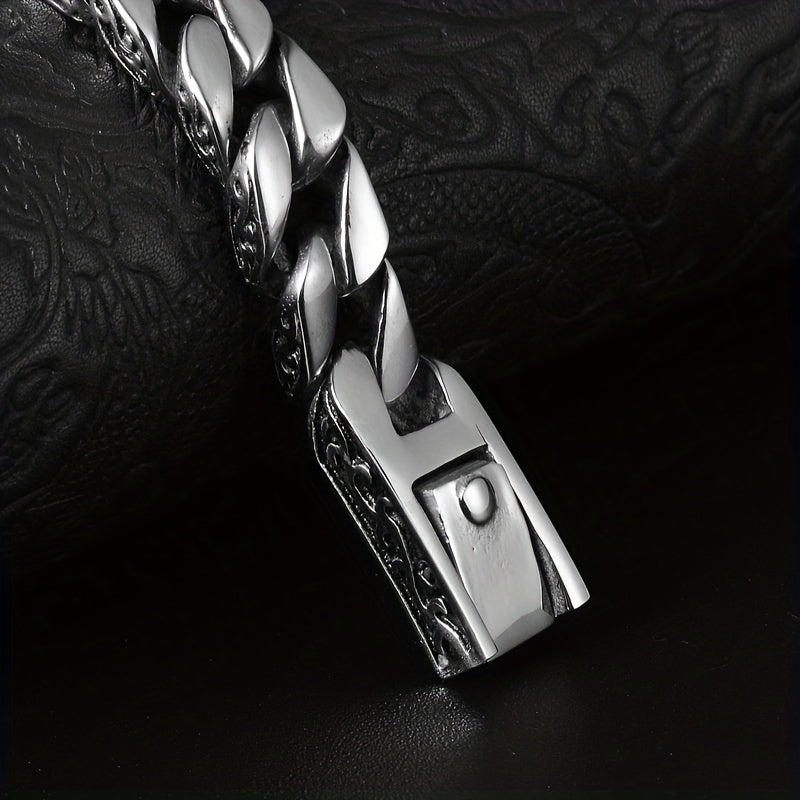 Add a touch of urban style to your look with this stainless steel totem Cuban chain bracelet. This hip hop-inspired accessory is perfect for rock stars and trendsetters.