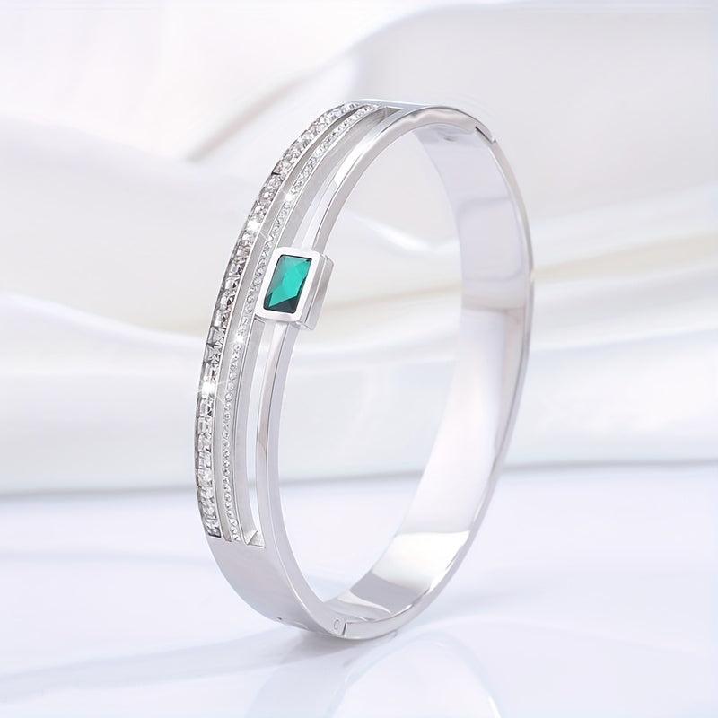 This stainless steel double row green bracelet is a perfect gift for her, suitable for all season wear. The stylish design adds charm to any outfit.