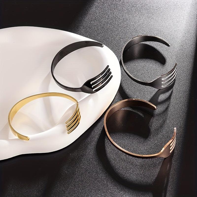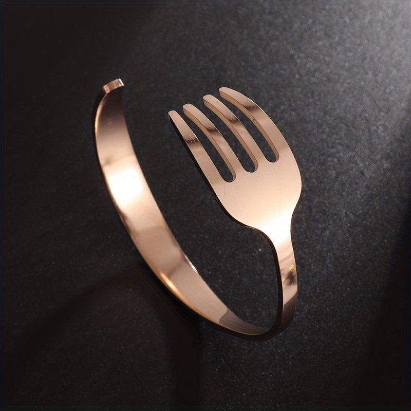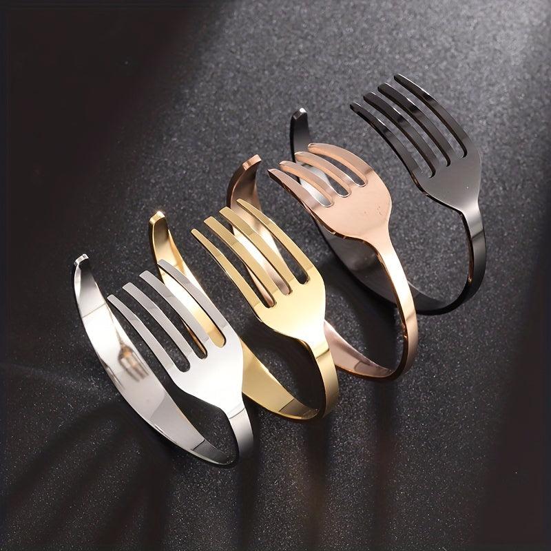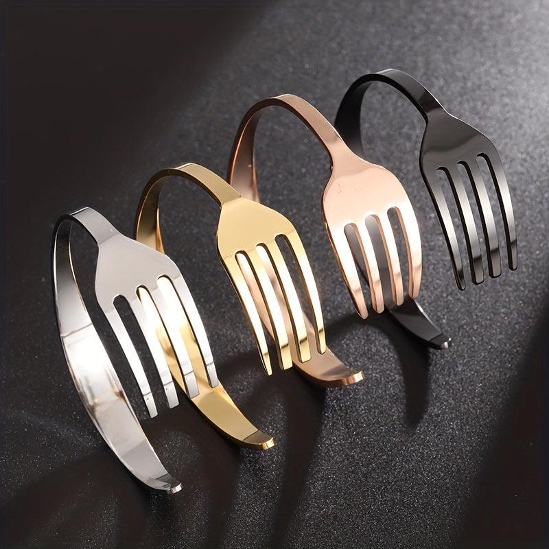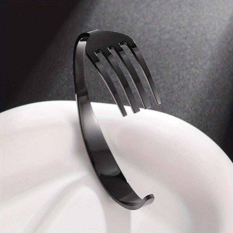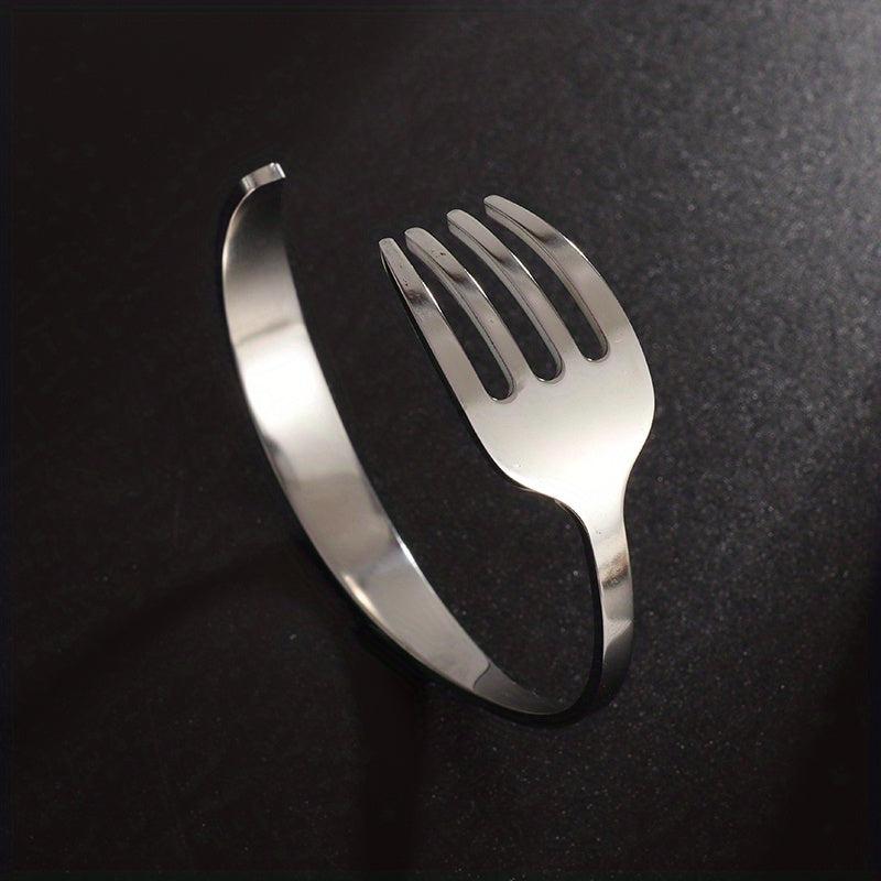 This unique stainless steel bracelet is crafted from a curved fork design, making it a creative and stylish accessory. It's a perfect gift for men and women who appreciate distinct jewelry pieces.