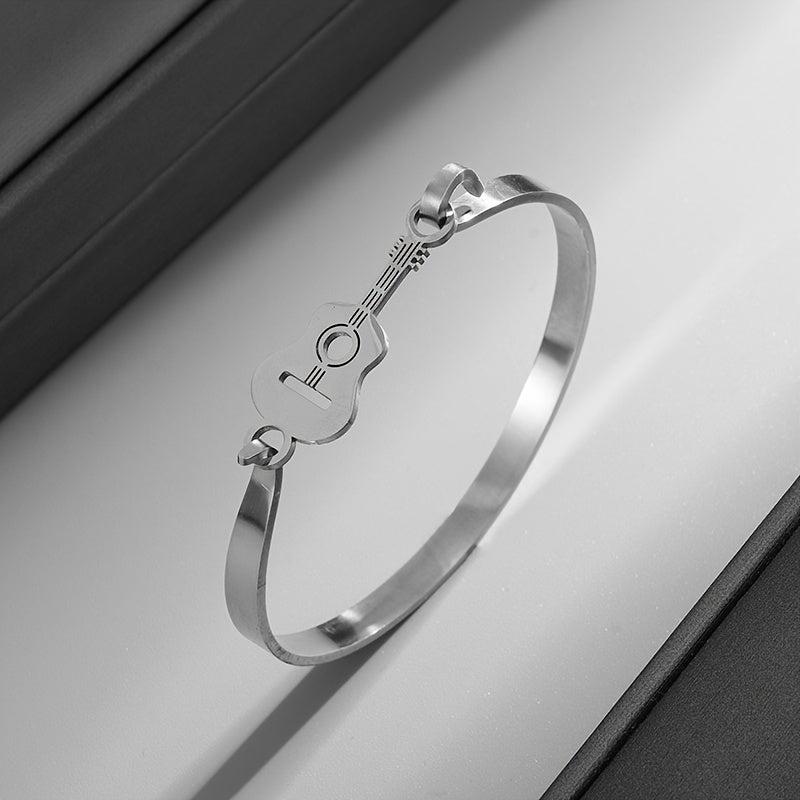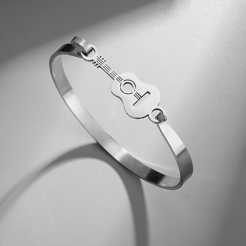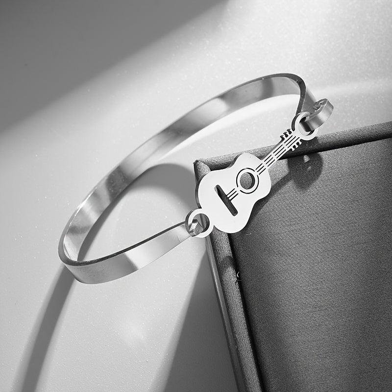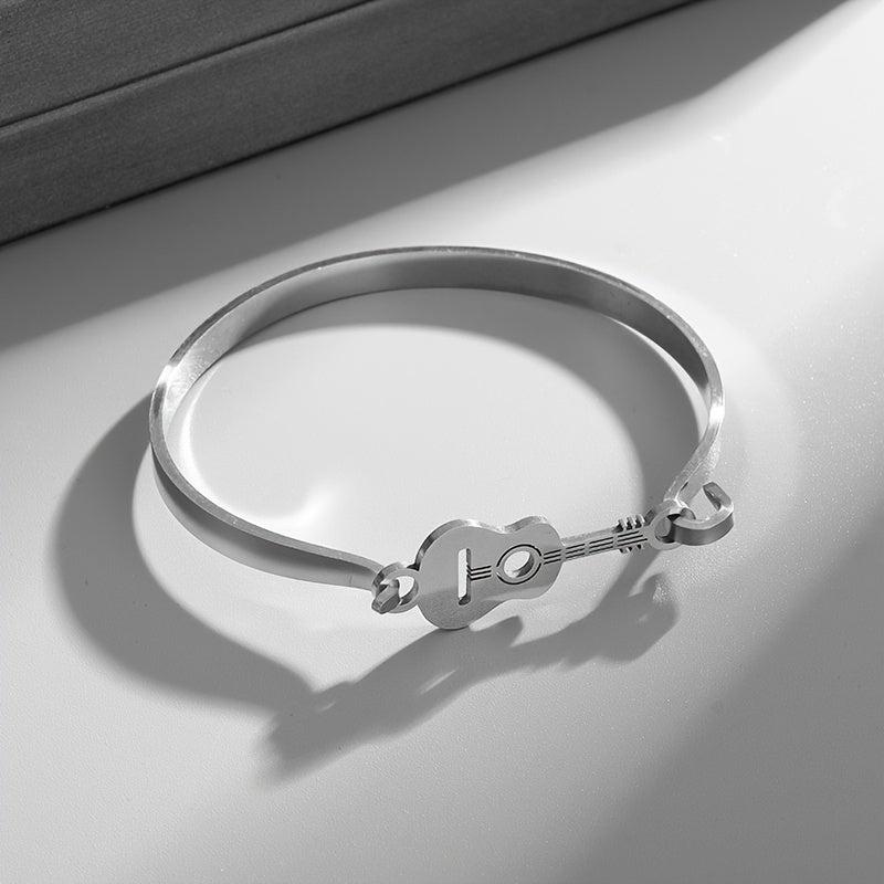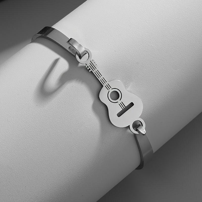 This sleek stainless steel guitar bracelet is perfect for music enthusiasts. It's fashionable and unisex, making it a versatile accessory.