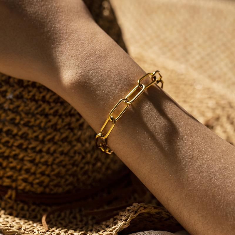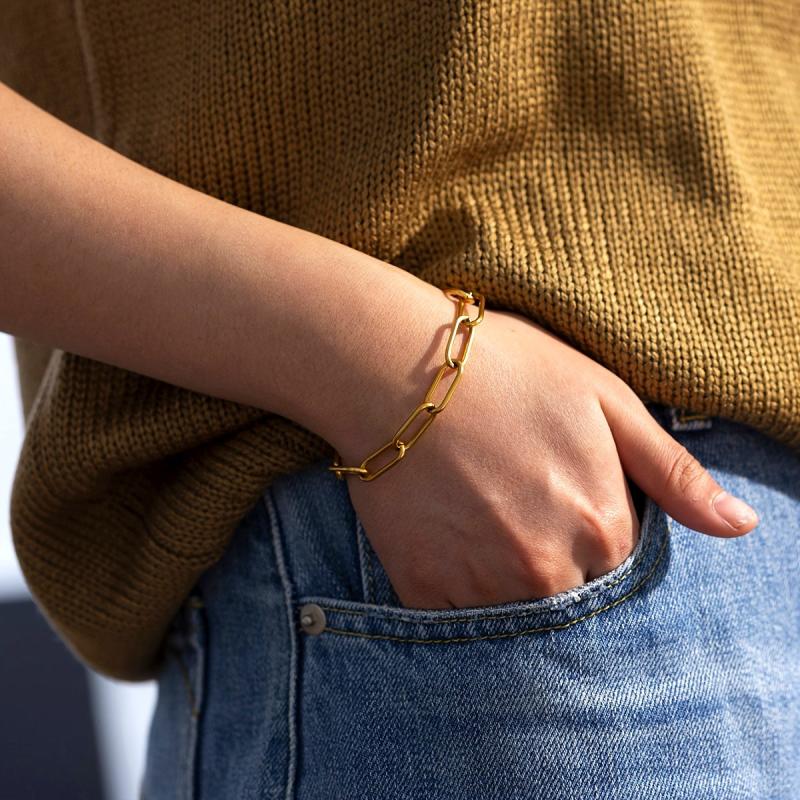 This stainless steel link chain bracelet is perfect for everyday and party wear. It is adjustable, fade resistant, and a stylish addition to any outfit.