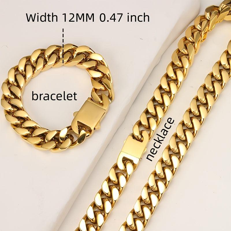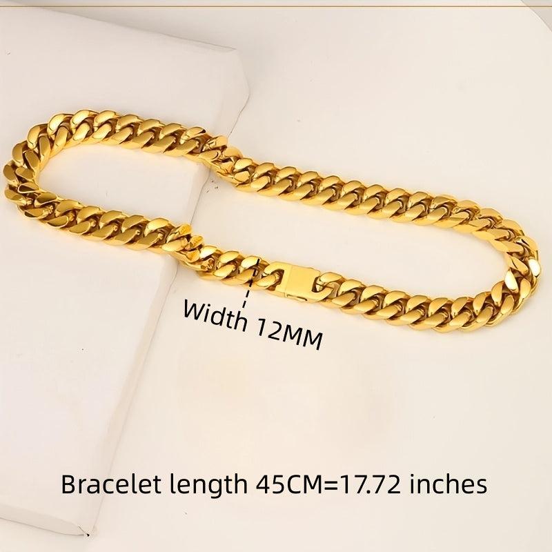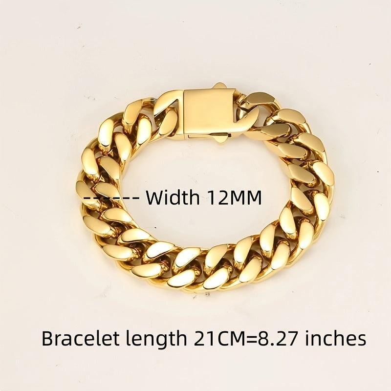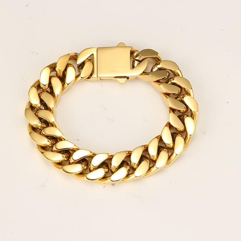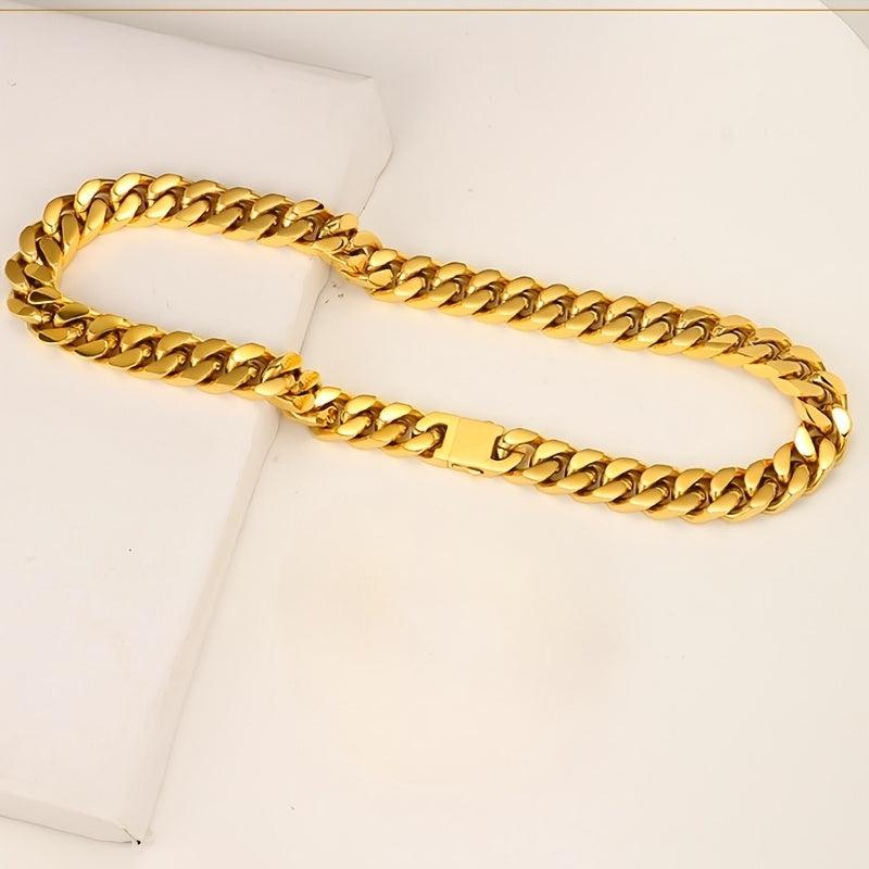 This hand polished Miami crypto Cuban chain is made of stainless steel, suitable for men and women. The chain features a vacuum Golden finish, making it a stylish hip hop accessory.