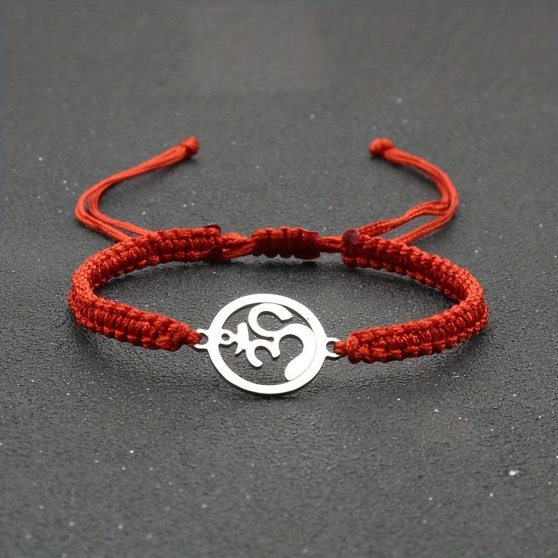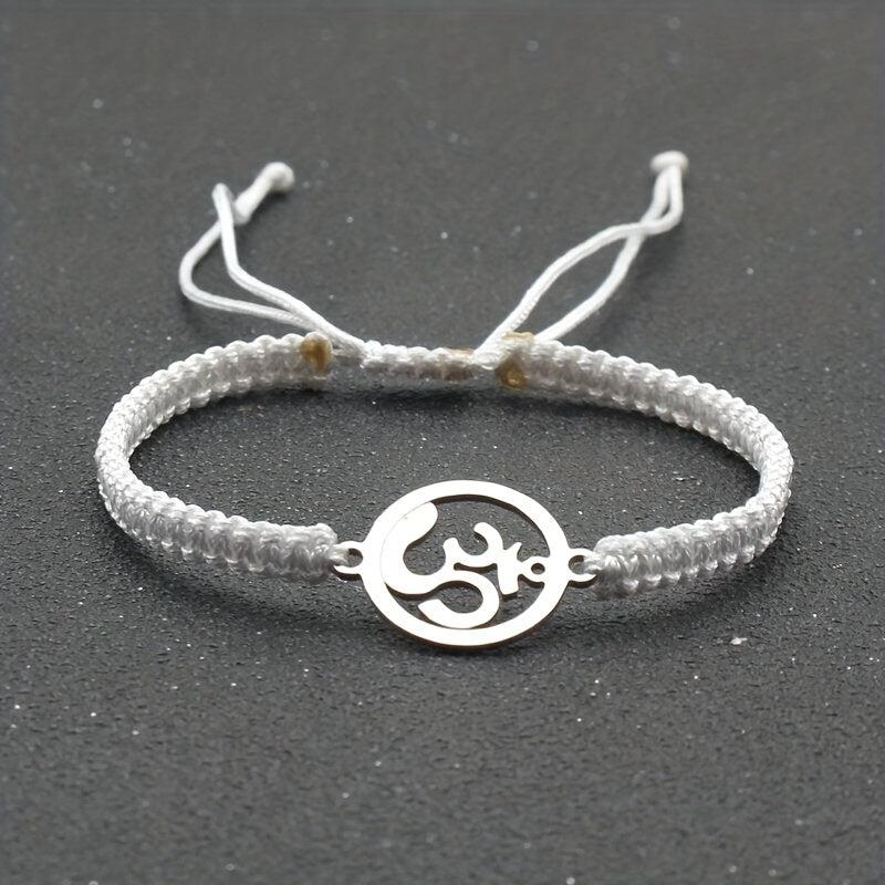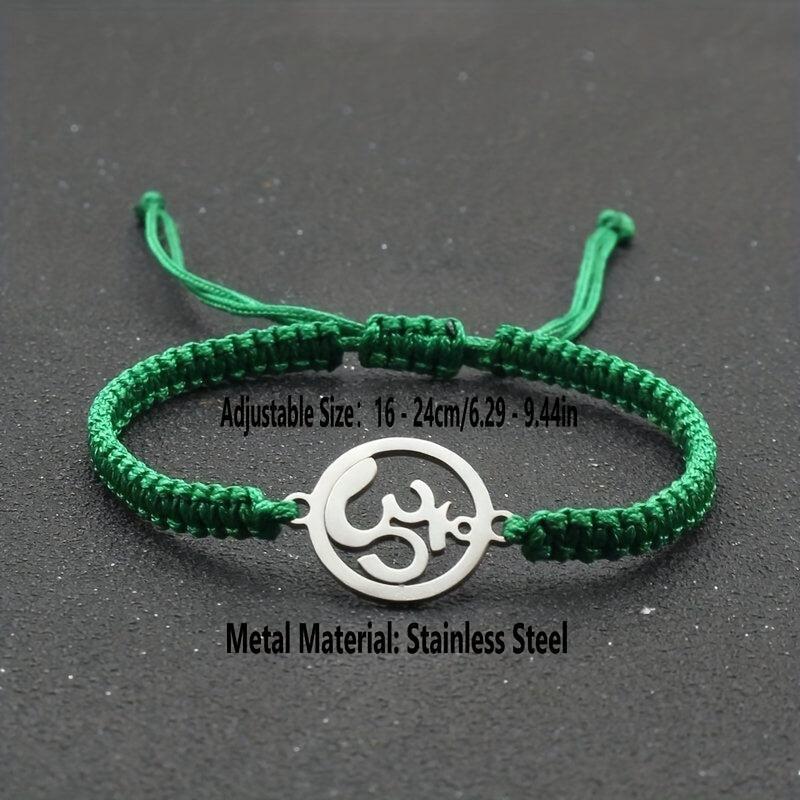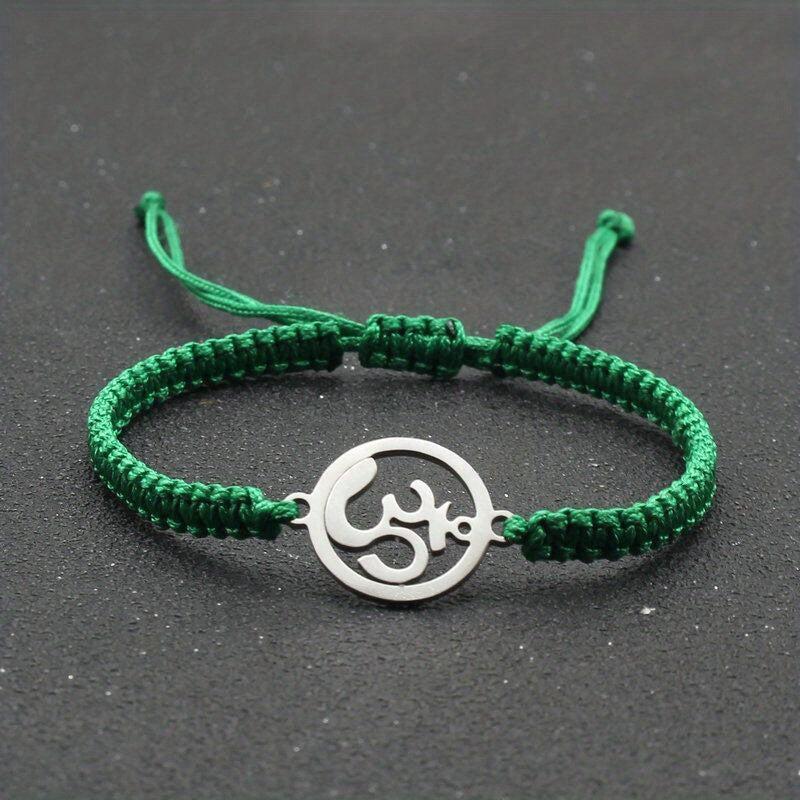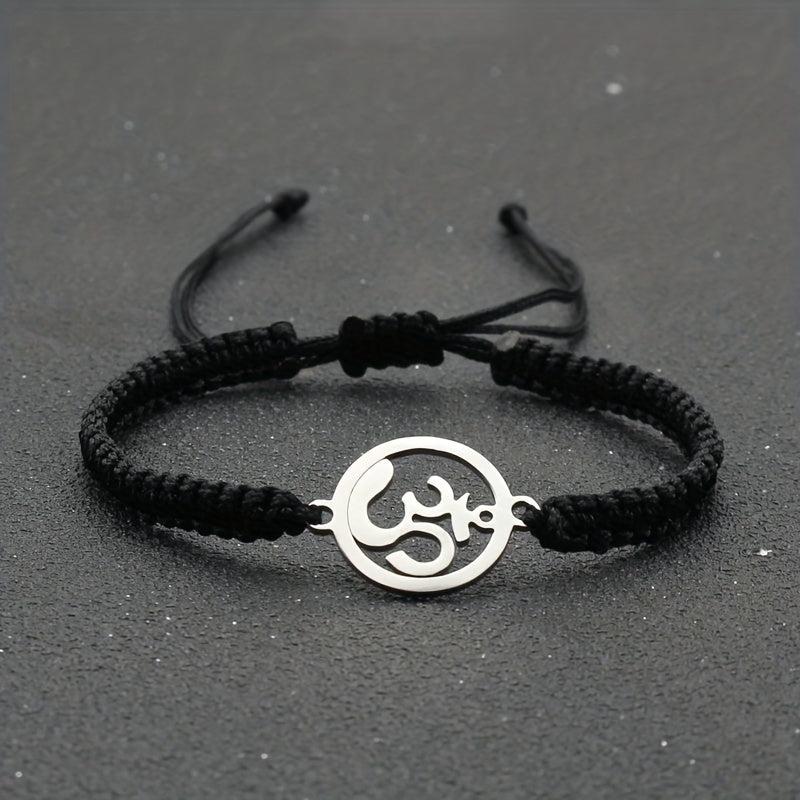 This handwoven bracelet features the OM symbol, suitable for both men and women. Made of stainless steel, it is durable and stylish. Perfect for yoga and daily wear.
