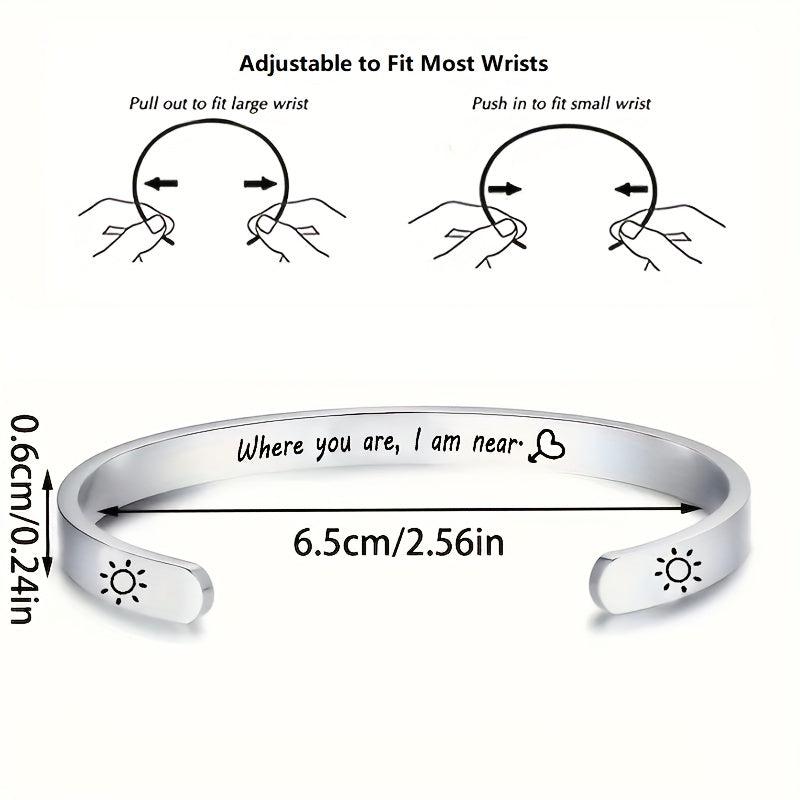 This stainless steel open bracelet is perfect for couples or friends to wear daily. It is a sleek and stylish piece that adds a touch of elegance to any outfit.