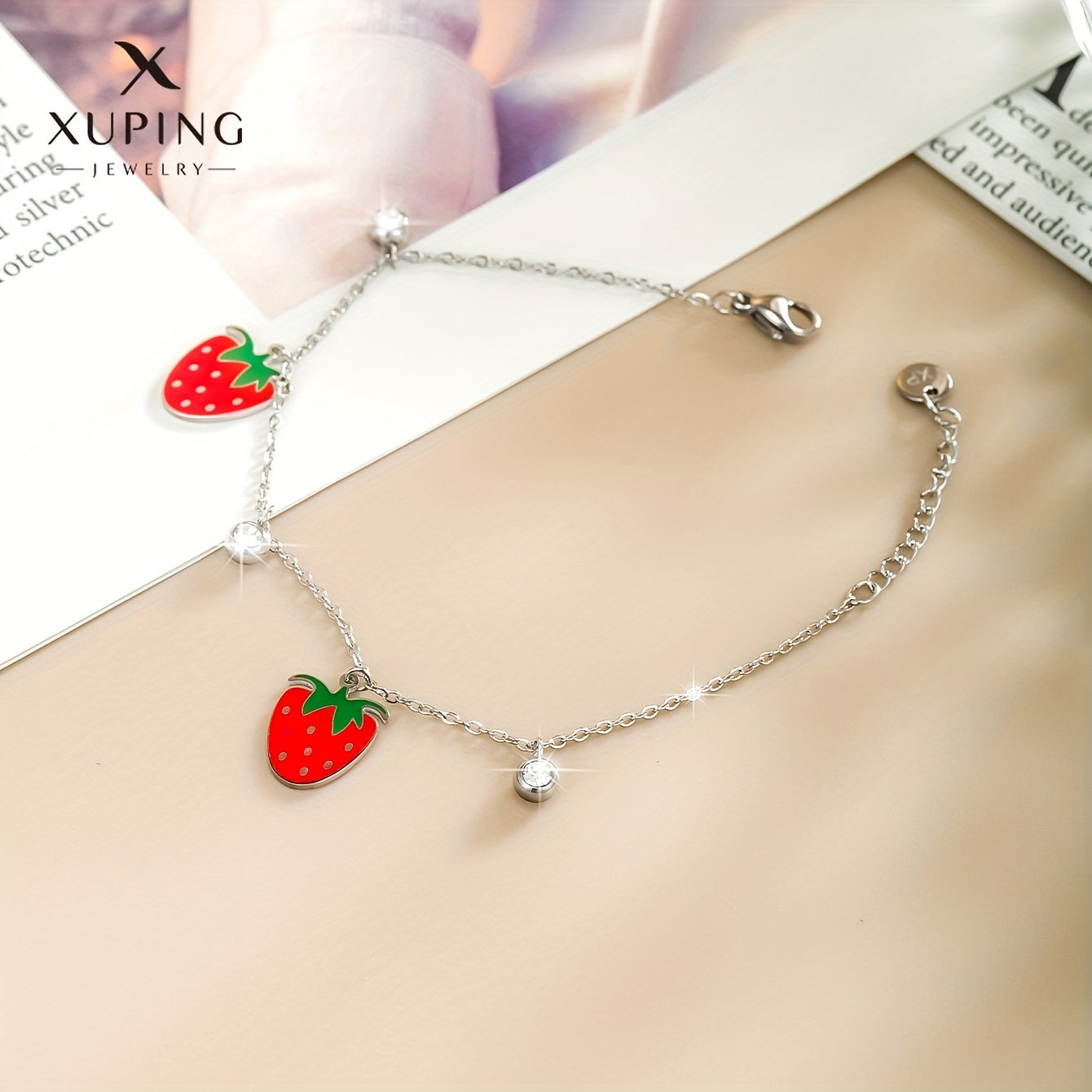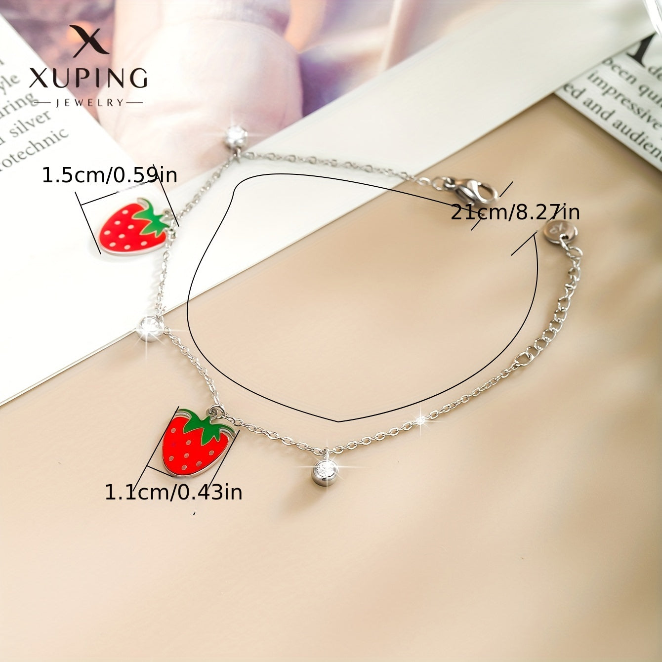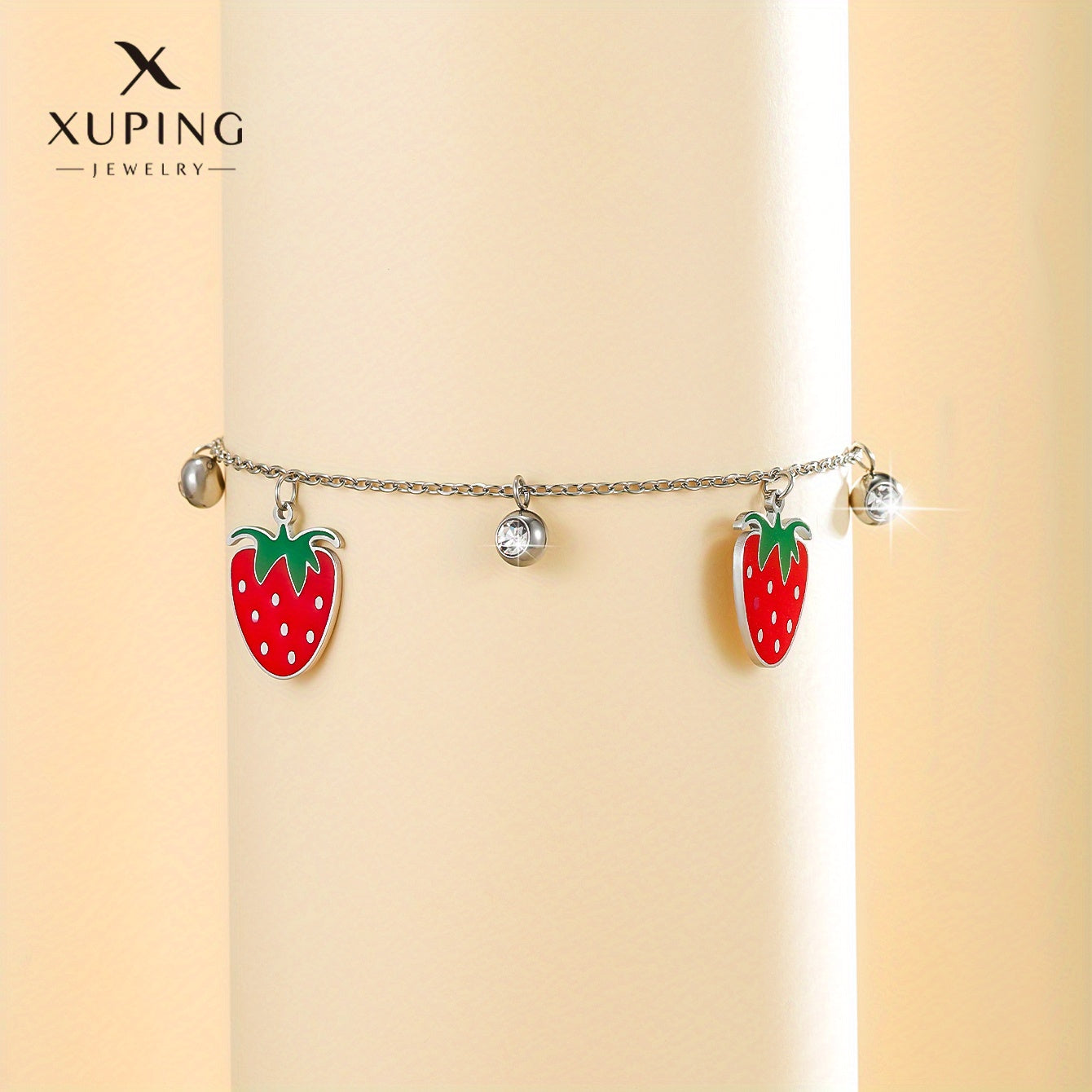 Add a touch of summer to your look with this delightful stainless steel bracelet featuring strawberry charm. Perfect gift for women and girls.